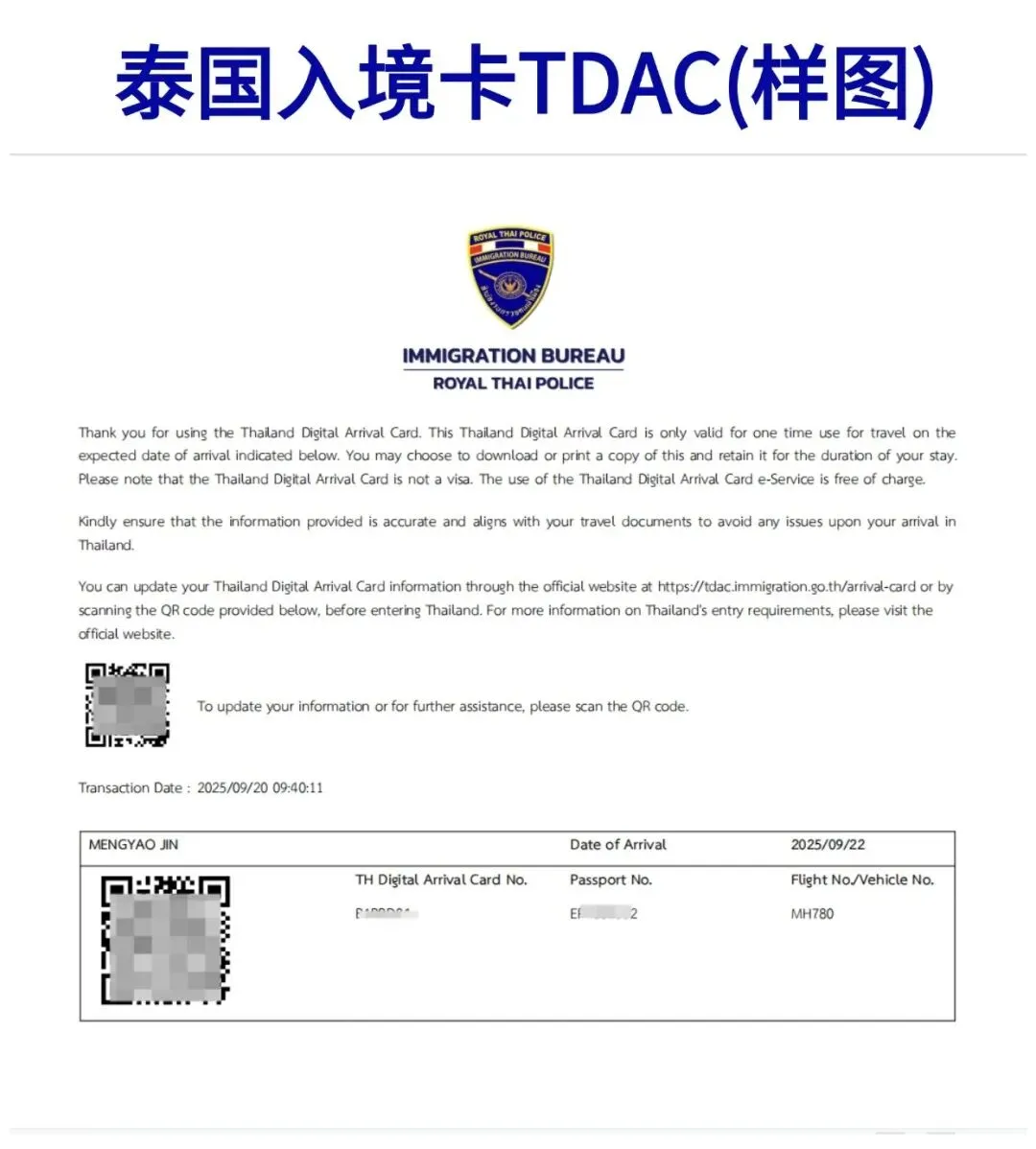 泰国电子入境卡(TDAC)