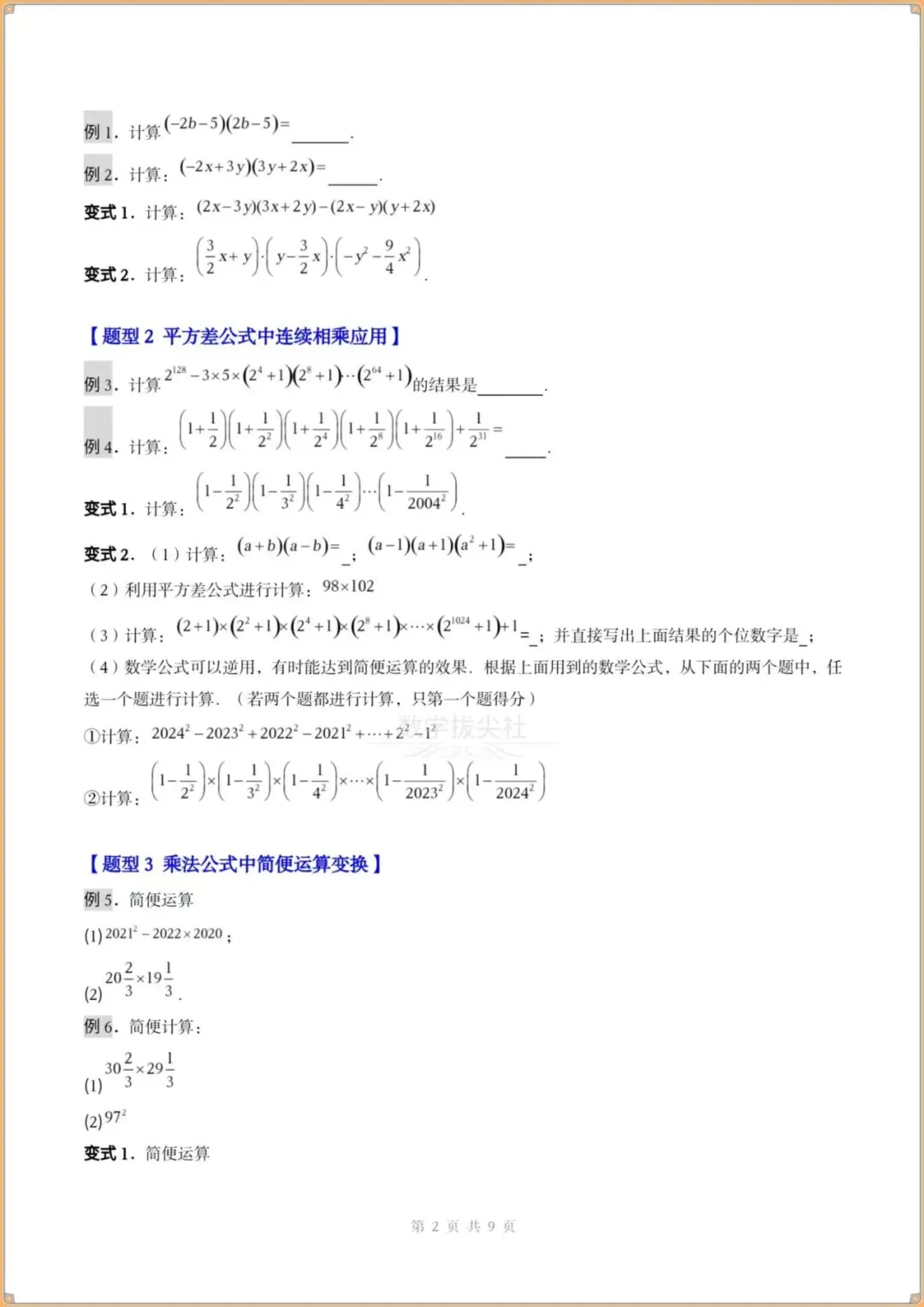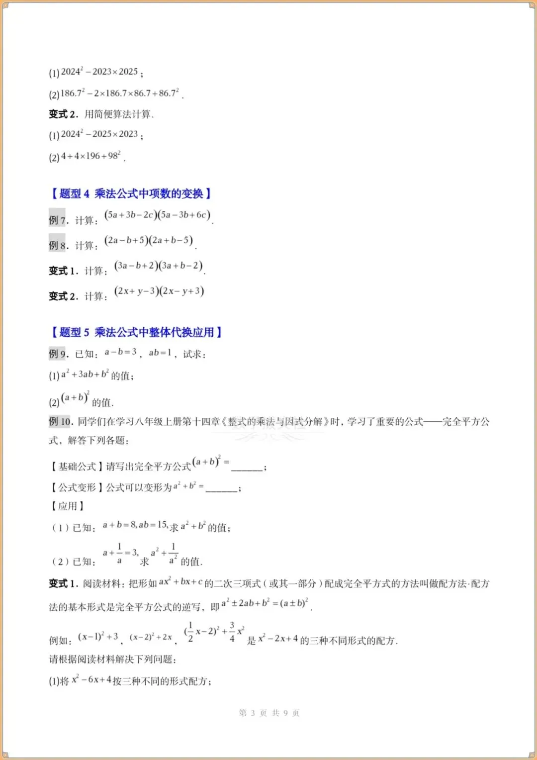 ③乘法公式中简便运算变换