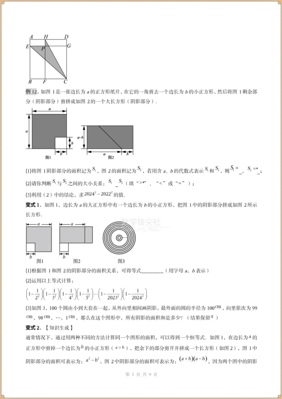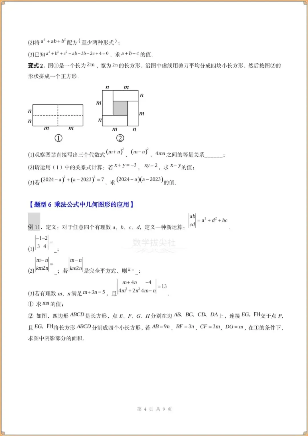 ⑥乘法公式中几何图形的应用