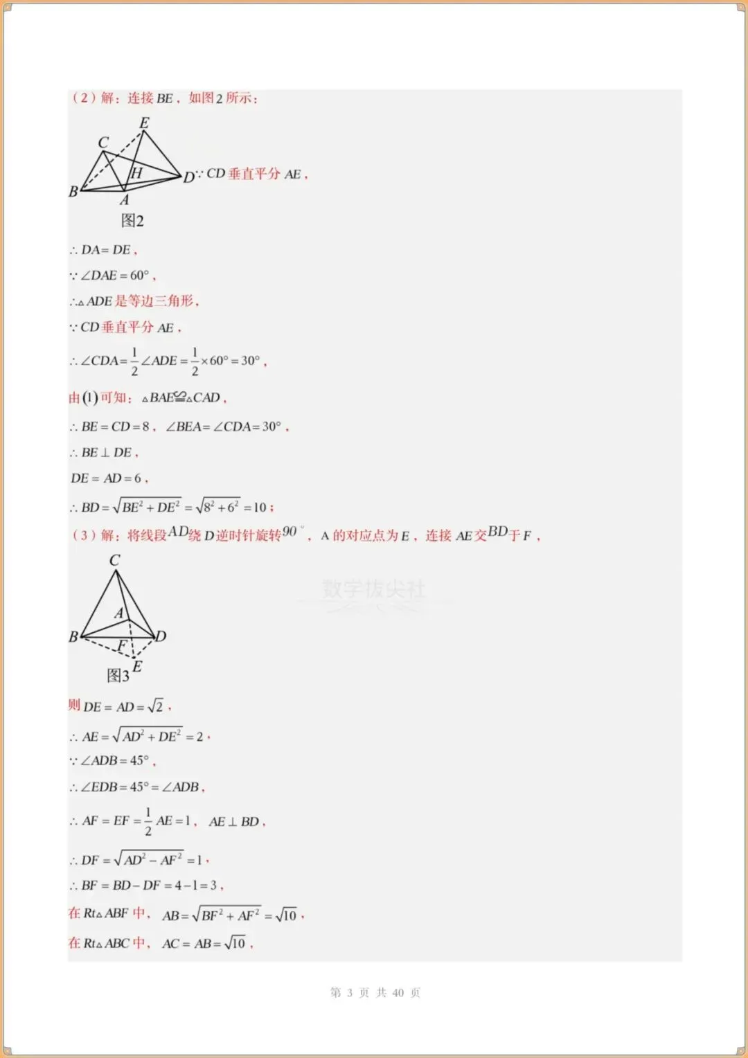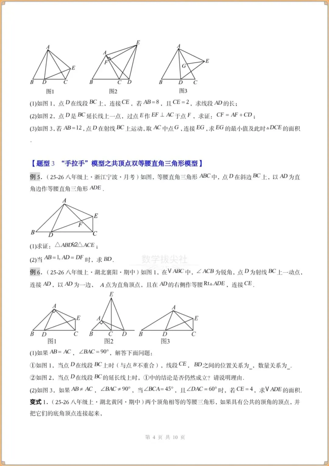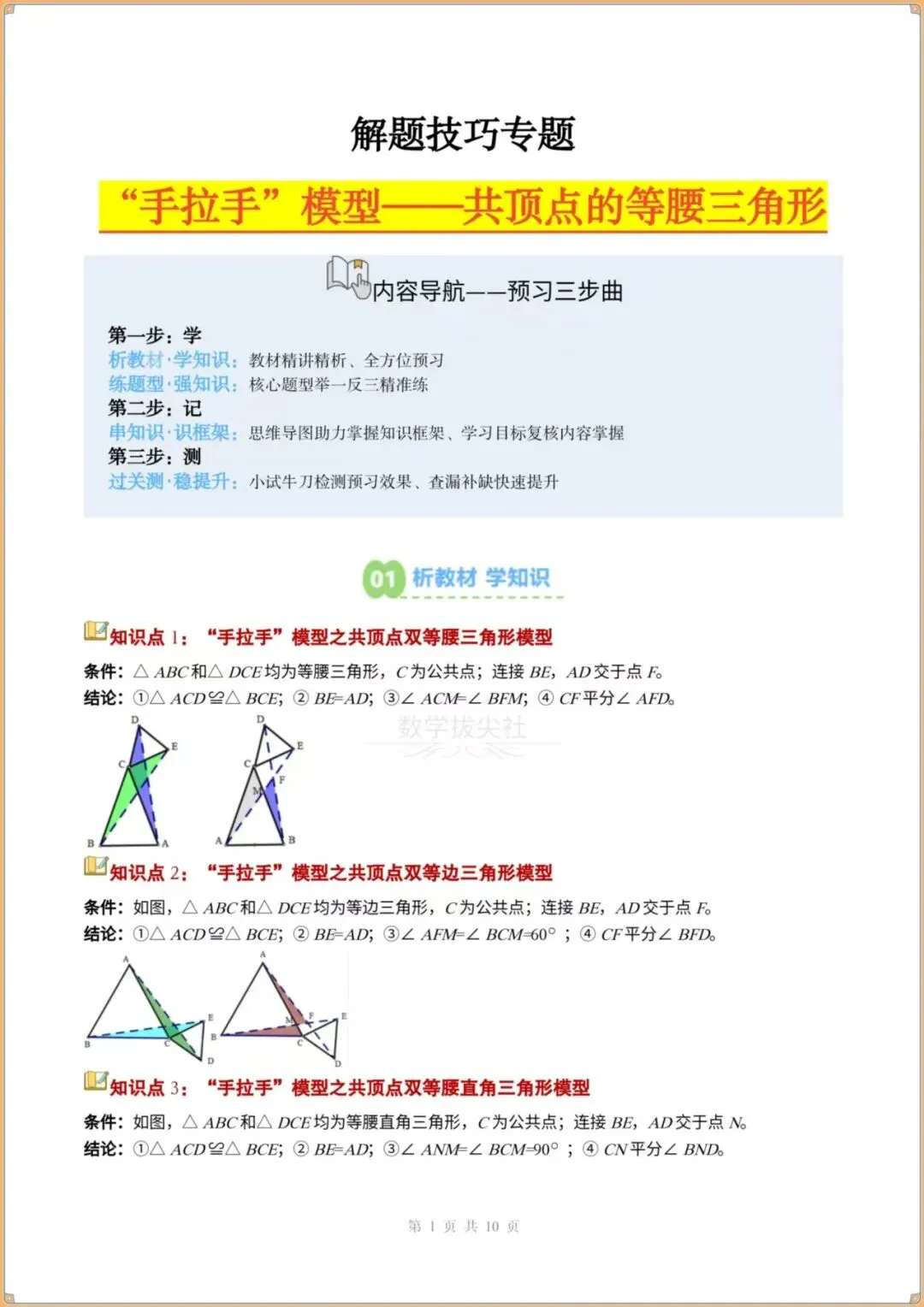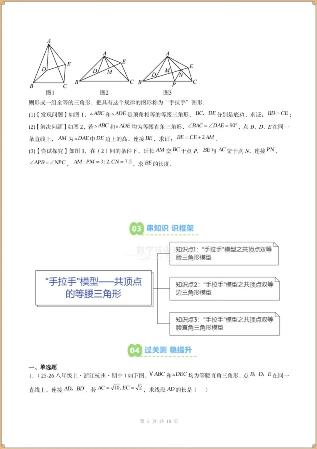 今日分享:👉2026春新版【北师版】八年级下册〈数学〉解题技巧《手拉手模型》共顶点的等腰三角形(3个知识点+3大题型)过关检测,有解析。