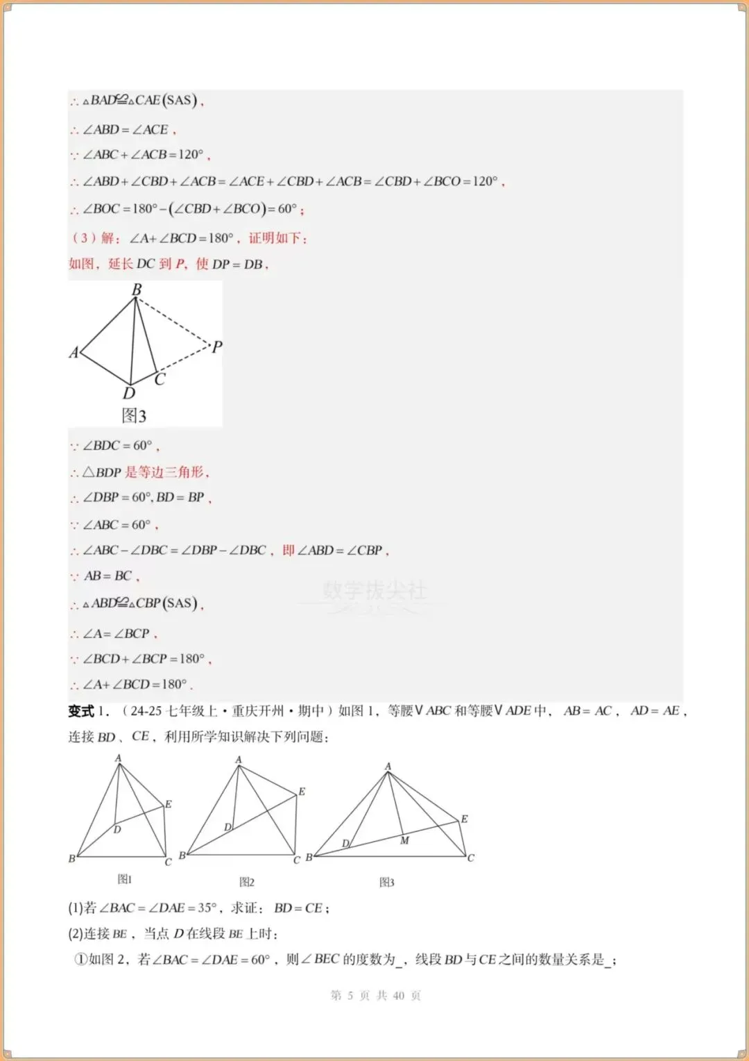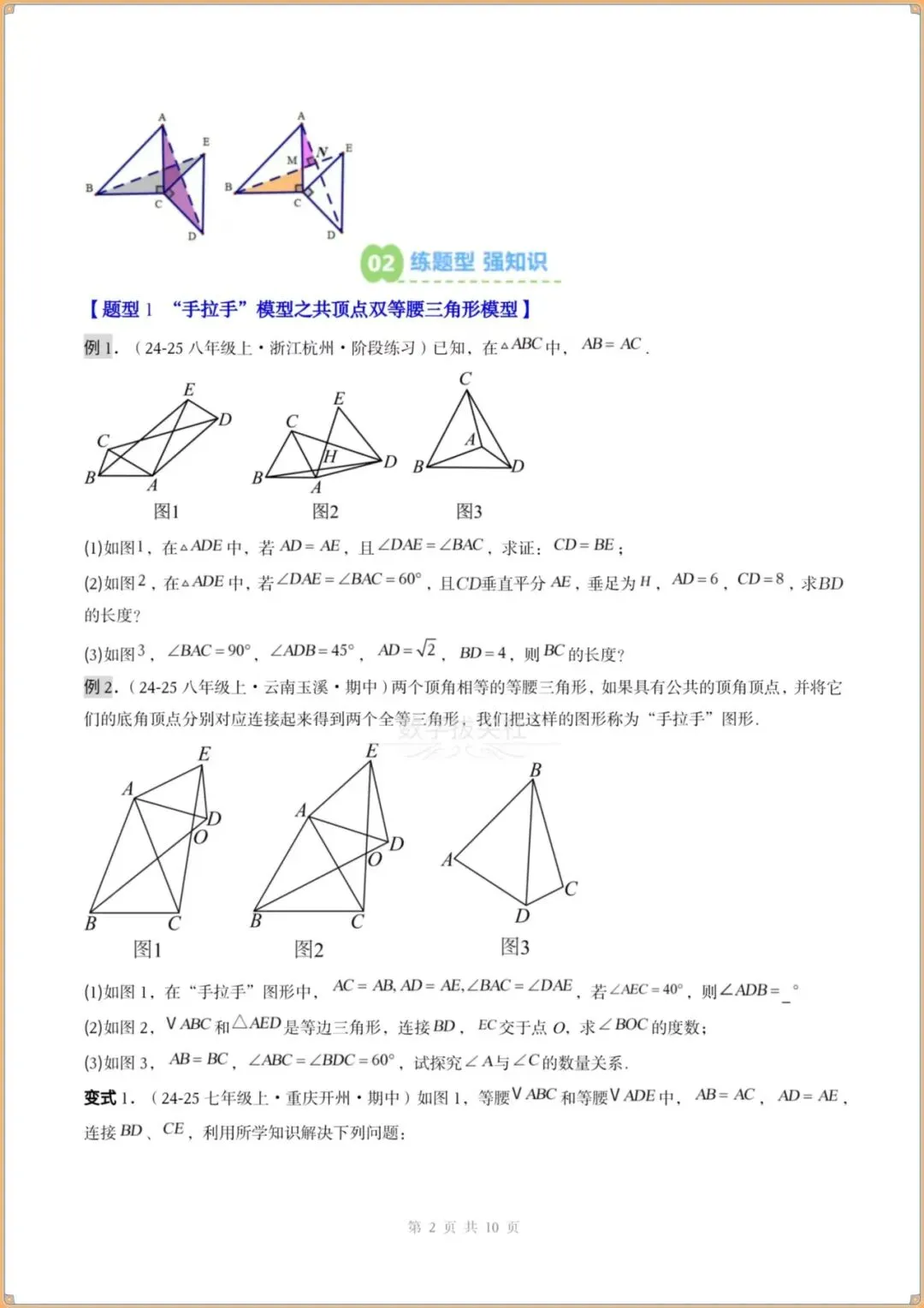 ①“手拉手”模型之共顶点双等腰三角形模型