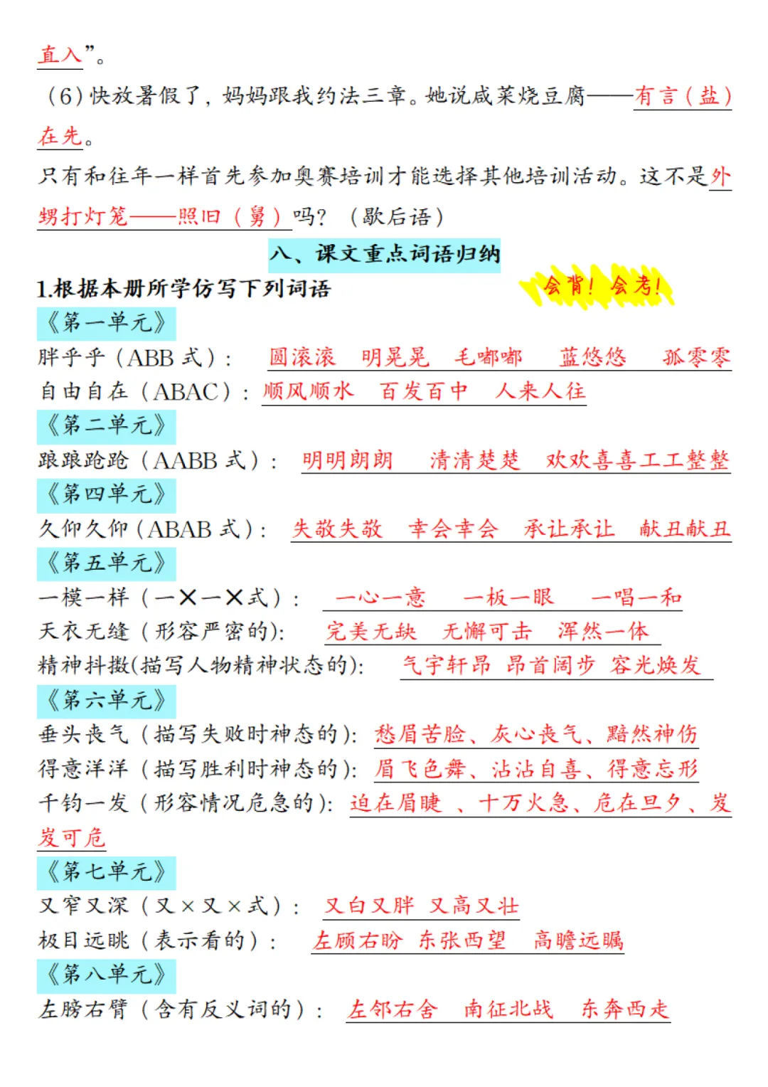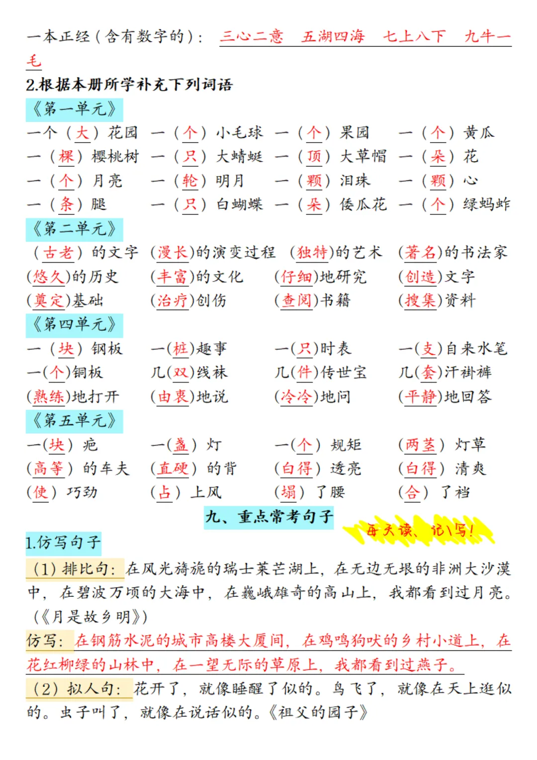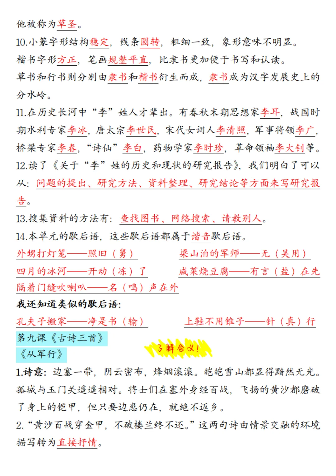💛今日分享新版教材 | 26年春五年级下册人教部编版语文《全册课内重点必背知识点汇总》高清电子版可打印~有需要的家长替孩子收藏或抓紧领取一份打印出来🖨️给孩子在家练一练吧✍