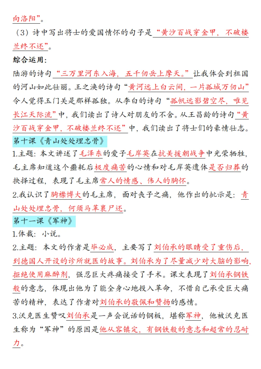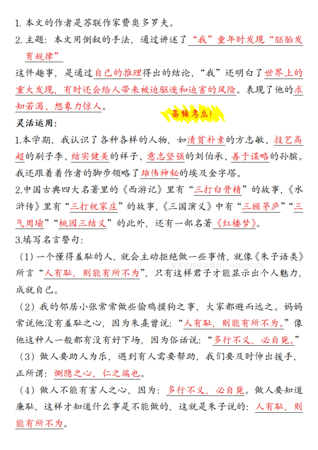 新版教材 | 26年春五年级下册人教部编版语文《全册课内重点必背知识点汇总》高清可打印