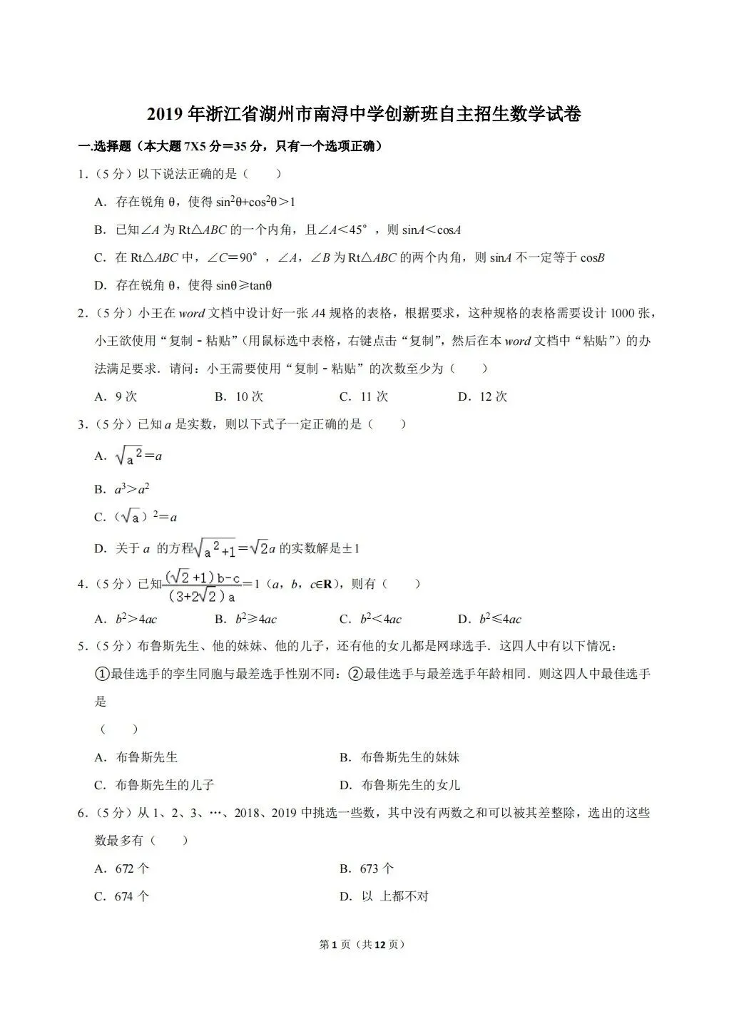 【文末可下载word】浙江省湖州市南浔中学创新班自主招生数学试卷及答案详解 链接:https://pan.baidu.com/s/1E5-dqKZLuJtwcQOkqch-WA?pwd=6WW6 复制这段内容打开「百度网盘APP 即可获取」
