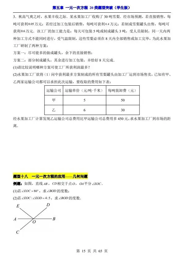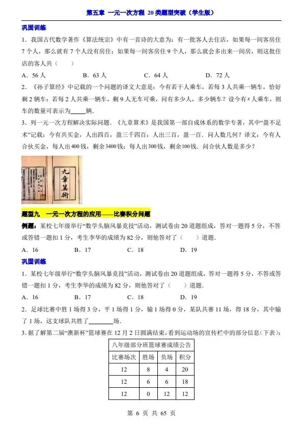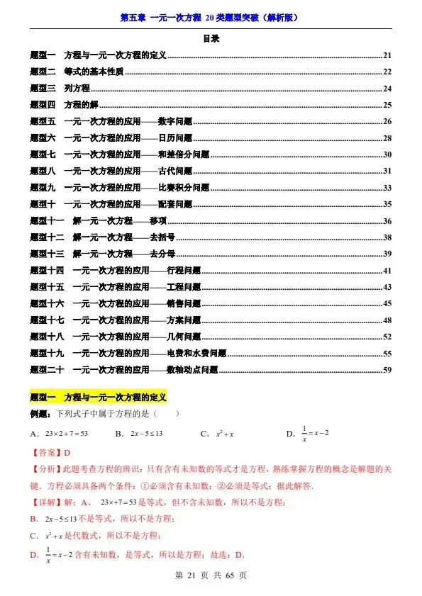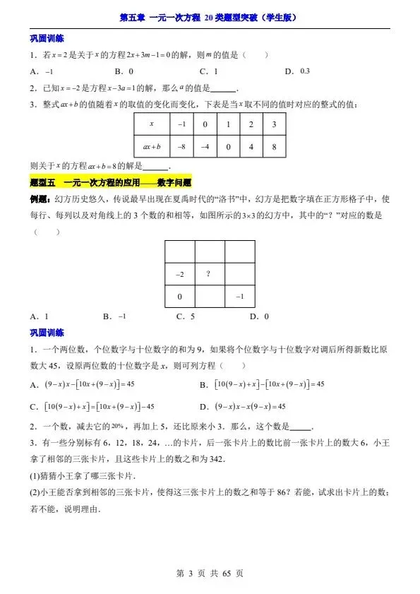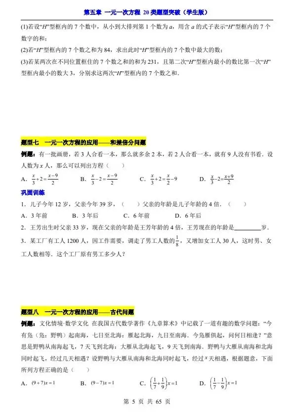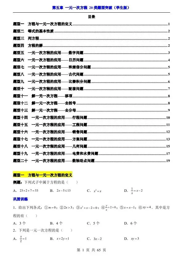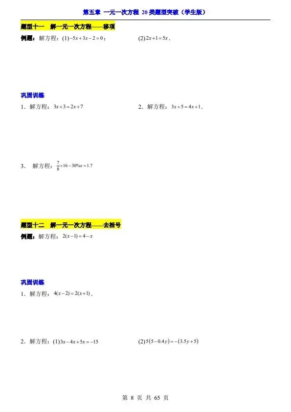 今日分享【华师版】新七年级下册数学·一元一次方程20类题型突破(含答案)!所有资料均为高清电子版,排版规整适配打印,不用费心整理,直接打印就能用。精准击破学习难点,帮孩子夯实基础、吃透考点,稳步提升学习效率!