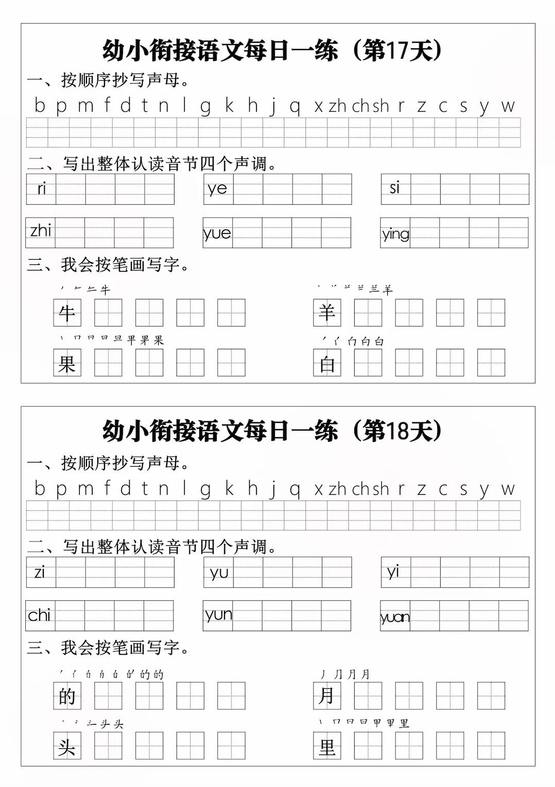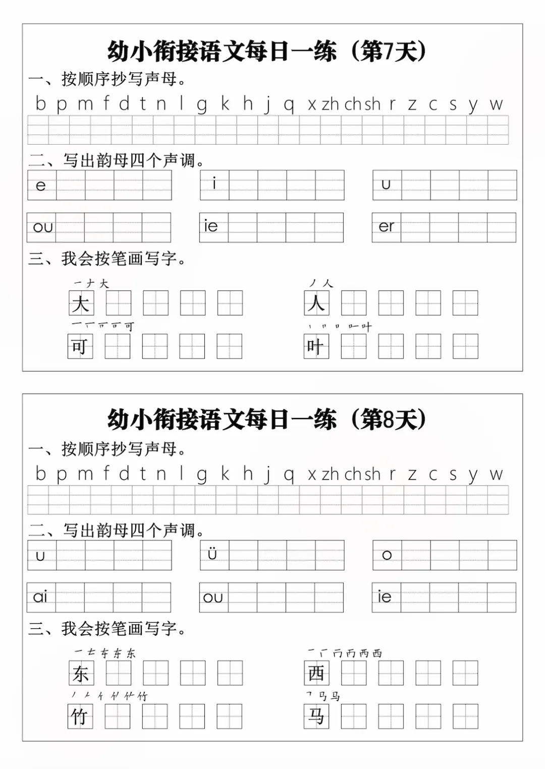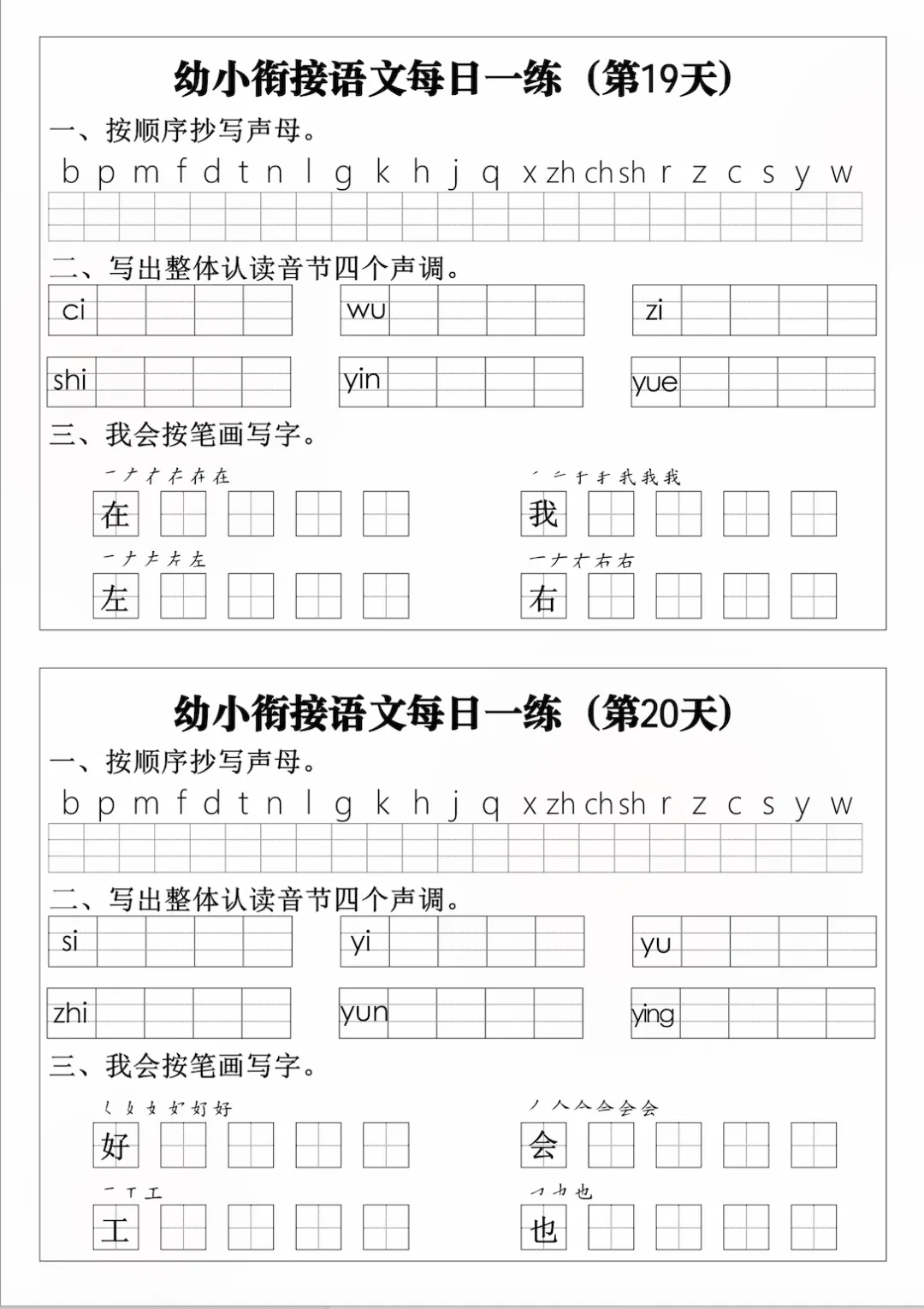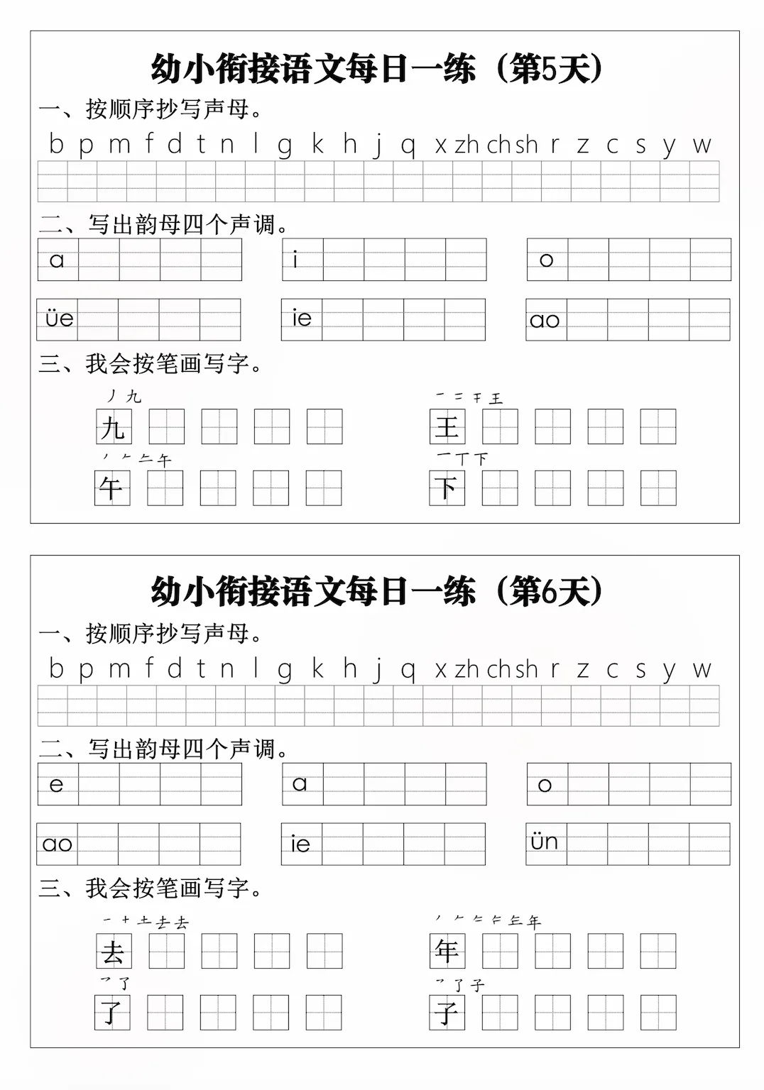 幼小衔接语文每日一练,大班语文天天练,电子版可打印