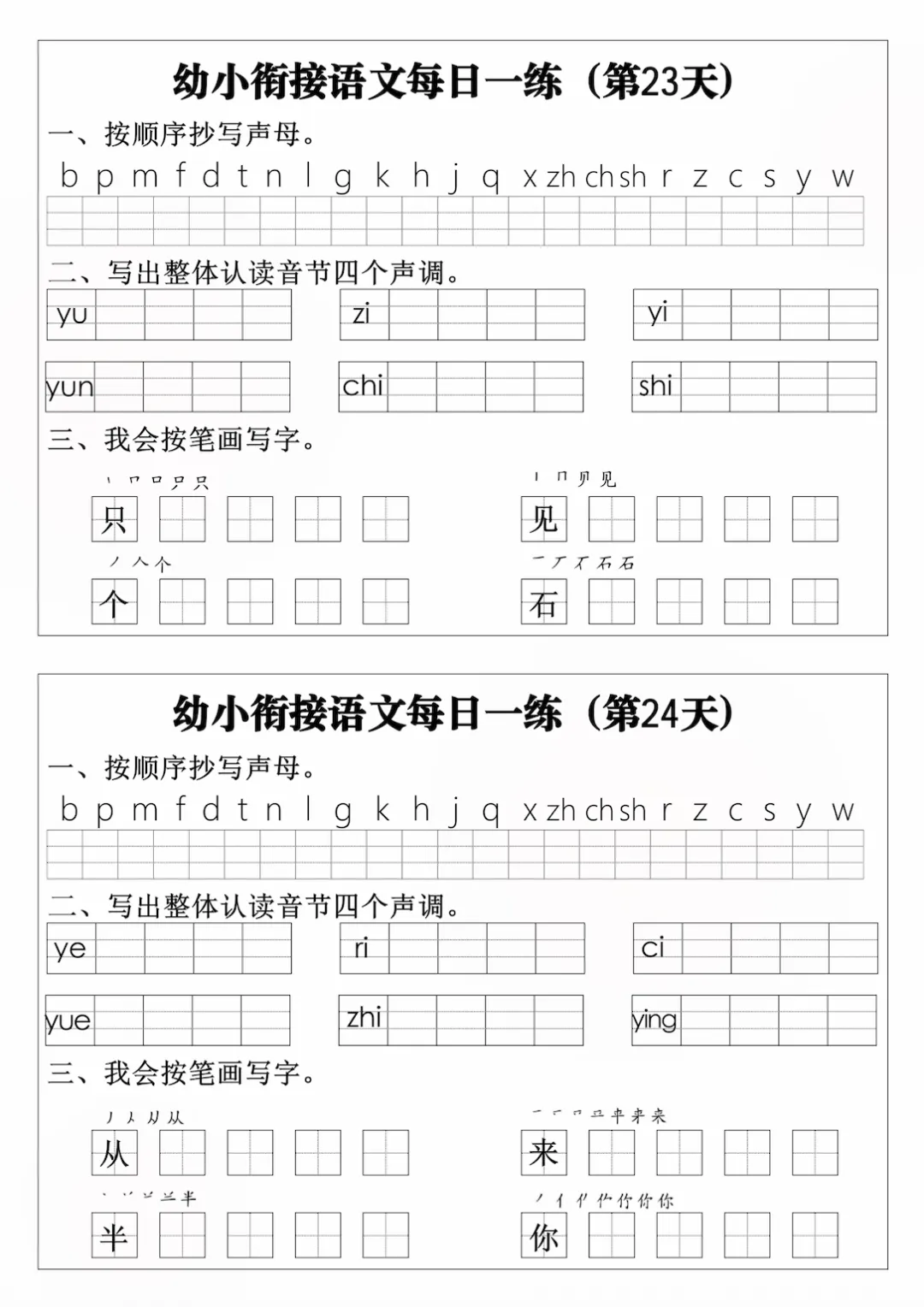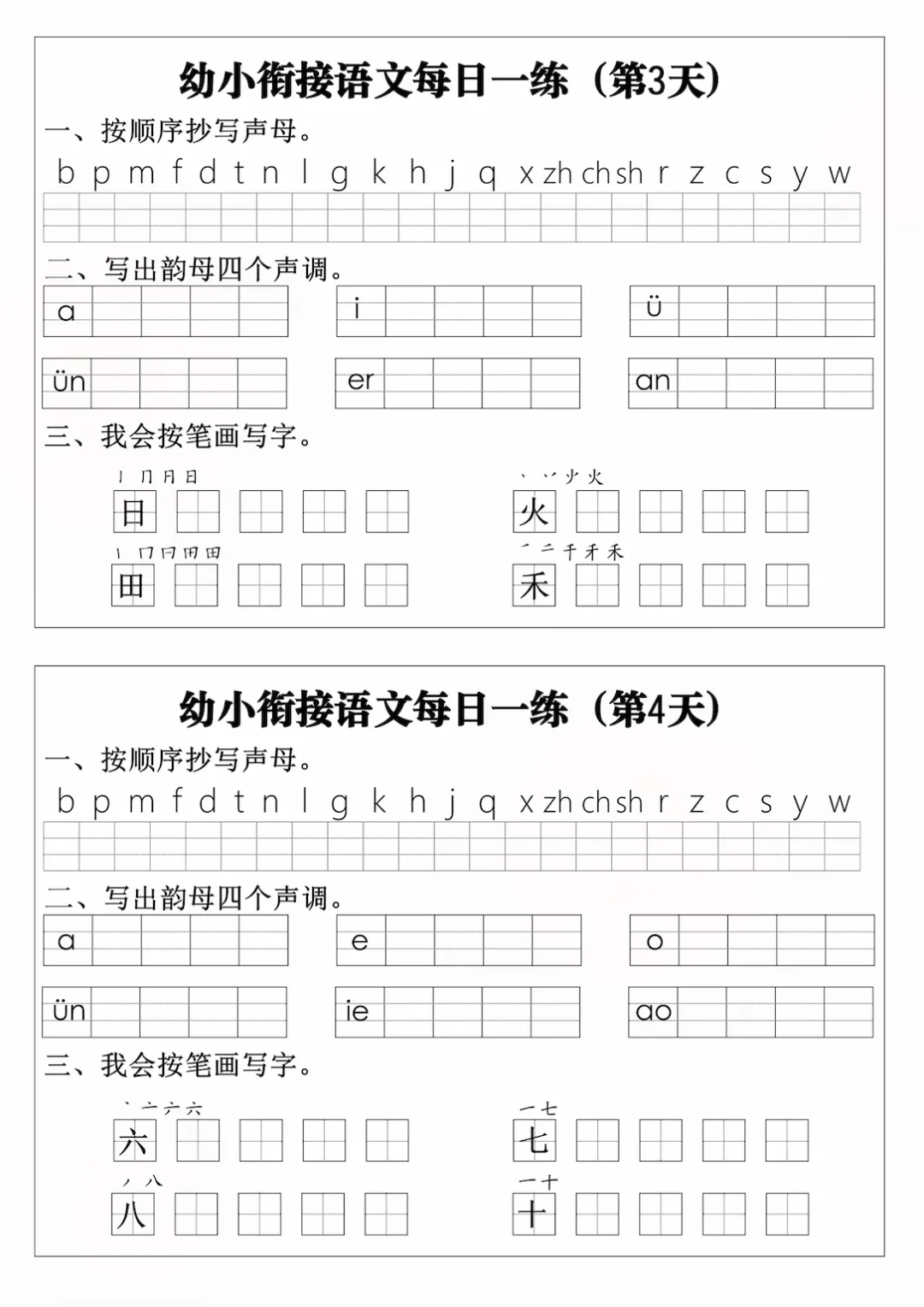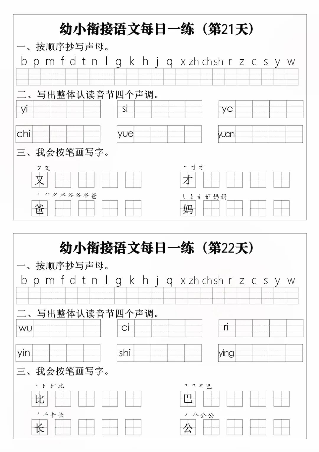 幼小衔接语文每日一练,大班语文天天练,电子版可打印