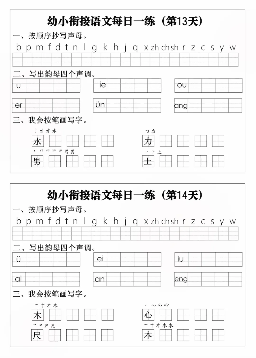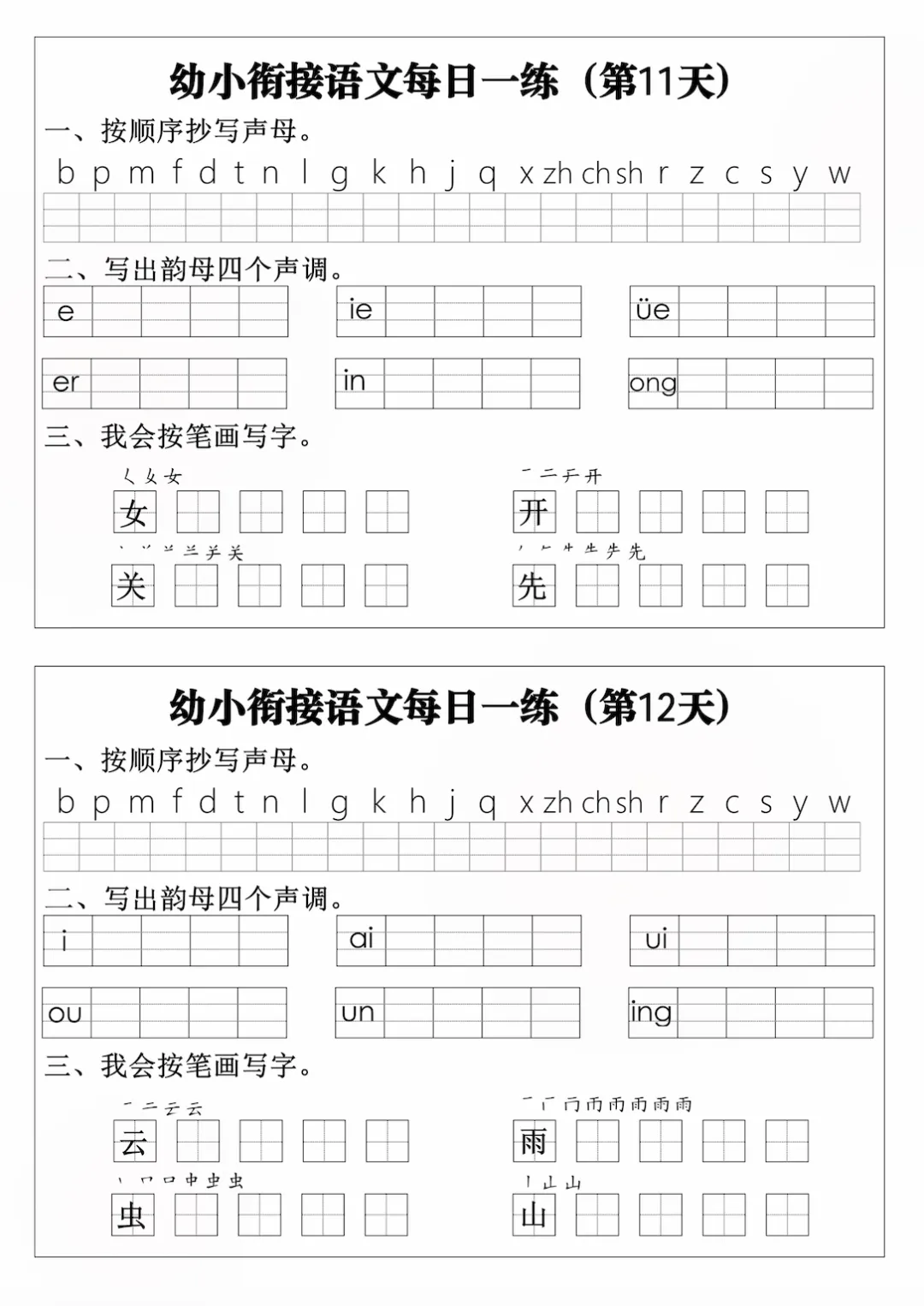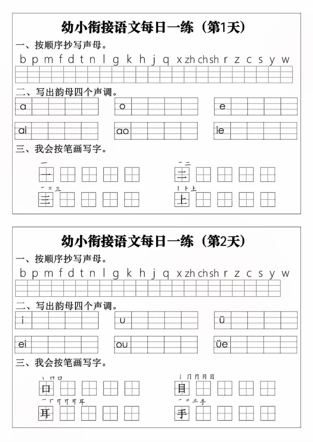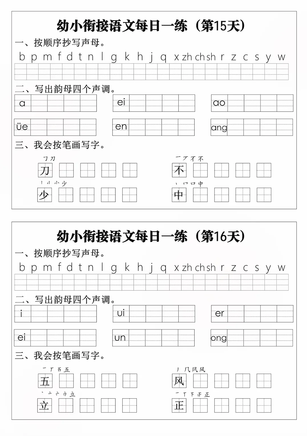 幼小衔接语文每日一练,大班语文天天练,电子版可打印