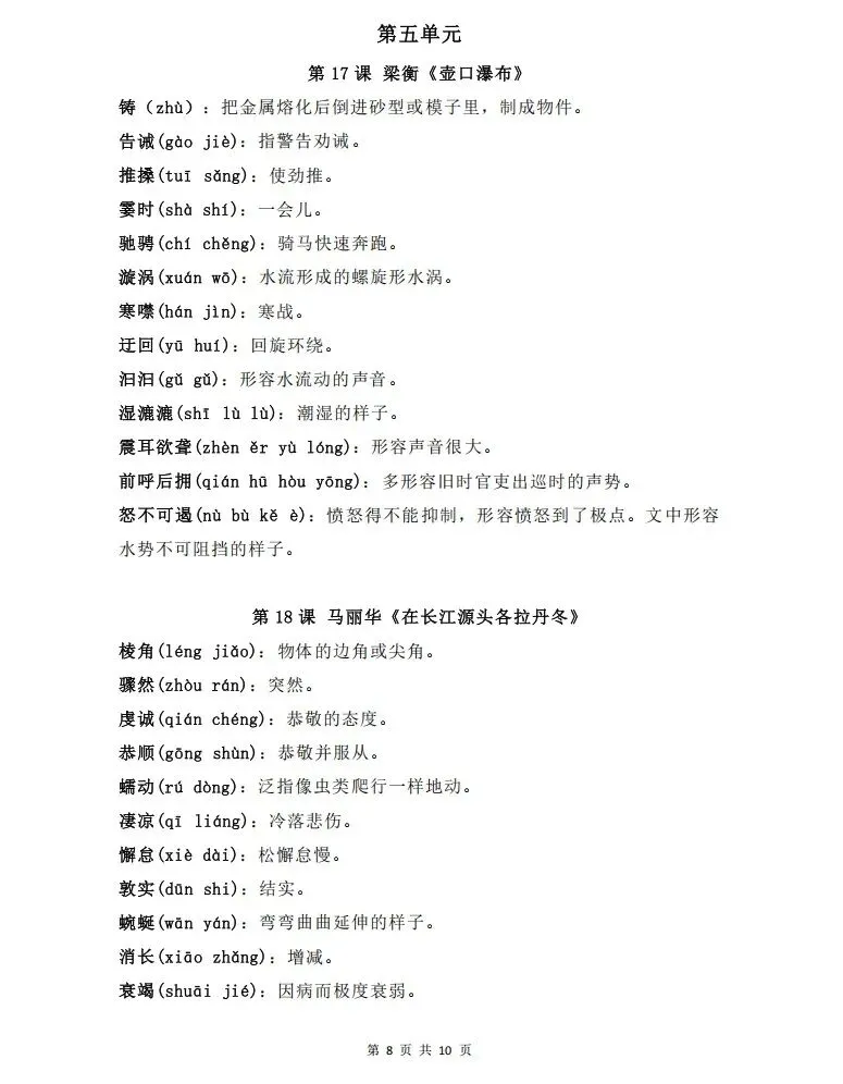 八下语文读读写写(最新版,可打印)