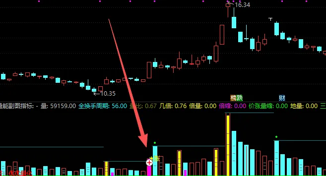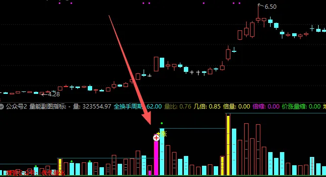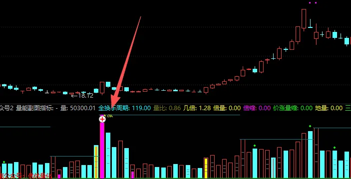 1强势启动买点:量能柱上方出现蓝色 “★涨” 字,伴随紫色粗量柱 + 小图标,触发条件为股价单日涨超 5% 且近乎涨停,是资金抢筹的强势信号。操作:信号出现在股价低位 / 中位时,收盘前 10 分钟轻仓(1-2 成)买入;若在高位(接近前期高点),直接回避,不追高。 2量能企稳买点:黄色倍量柱(成交量较前一日增 90% 以上)或黄色地量柱(近 60 天最小成交量)。倍量柱是资金进场信号,低位可 1 成试买,后续量能不缩再加仓;地量柱是跌势收尾信号,别急买,等后续 1-2 天放量(红 / 黄色量柱)再进场。 3超跌反弹买点:量能柱旁出现绿色实心圆点(三阴信号),是股价调整后的超跌反弹信号。操作:低位出现可 1 成抄底,严格设 5% 止损;反弹至近期压力位(前高 / 均线)果断卖出,不恋战,避免反弹结束被套。 |