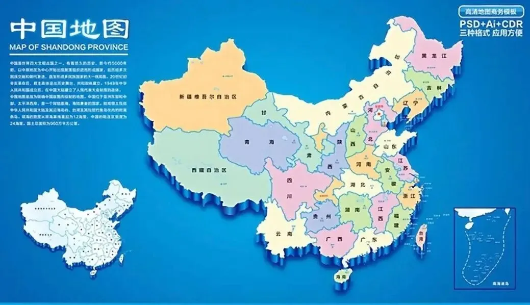 【彩色&电子版】中国地图2025最新版高清大图矢量(CDR/AI/PSD)源文件设计素材模板!