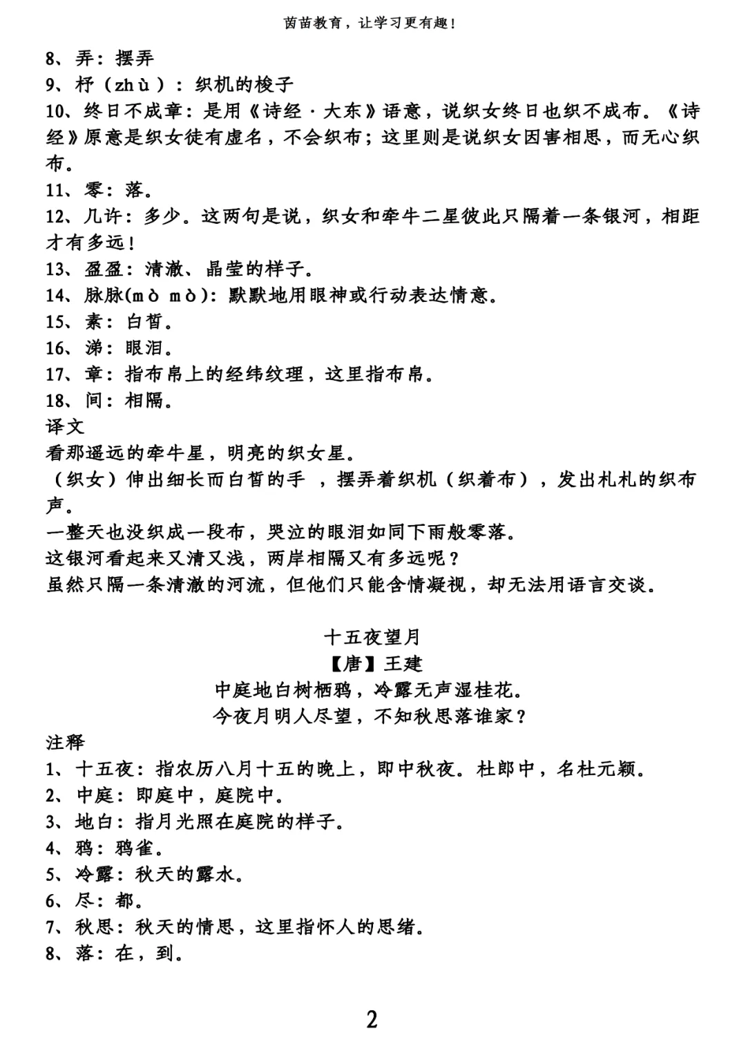 12、几许:多少。这两句是说,织女和牵牛二星彼此只隔着一条银河,相距才有多远!
