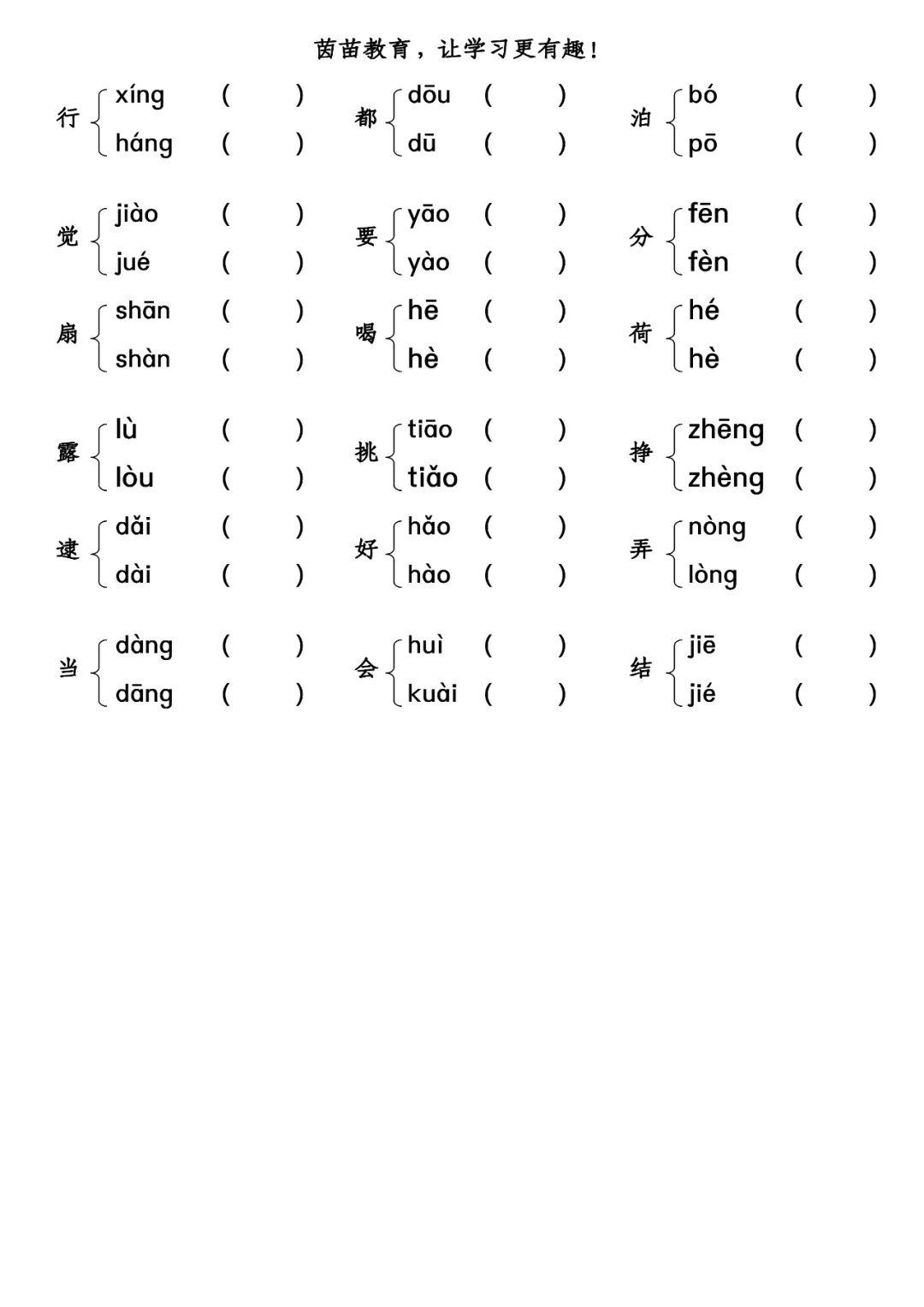 二年级下册多音字组词专项练习pdf下载,可打印!