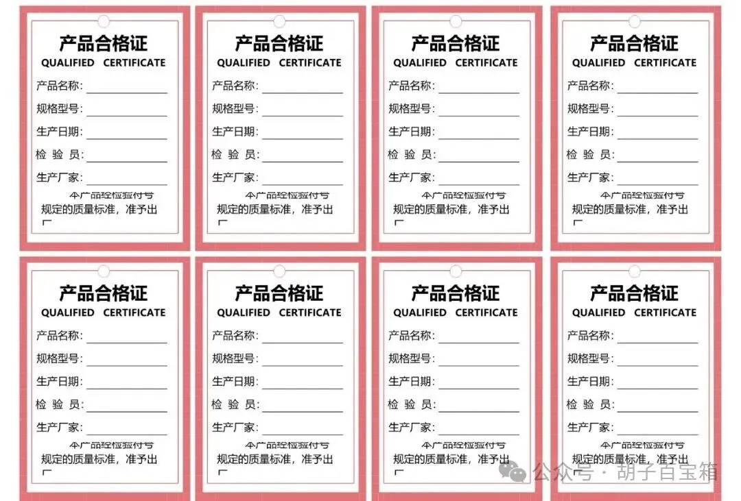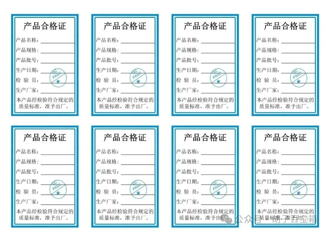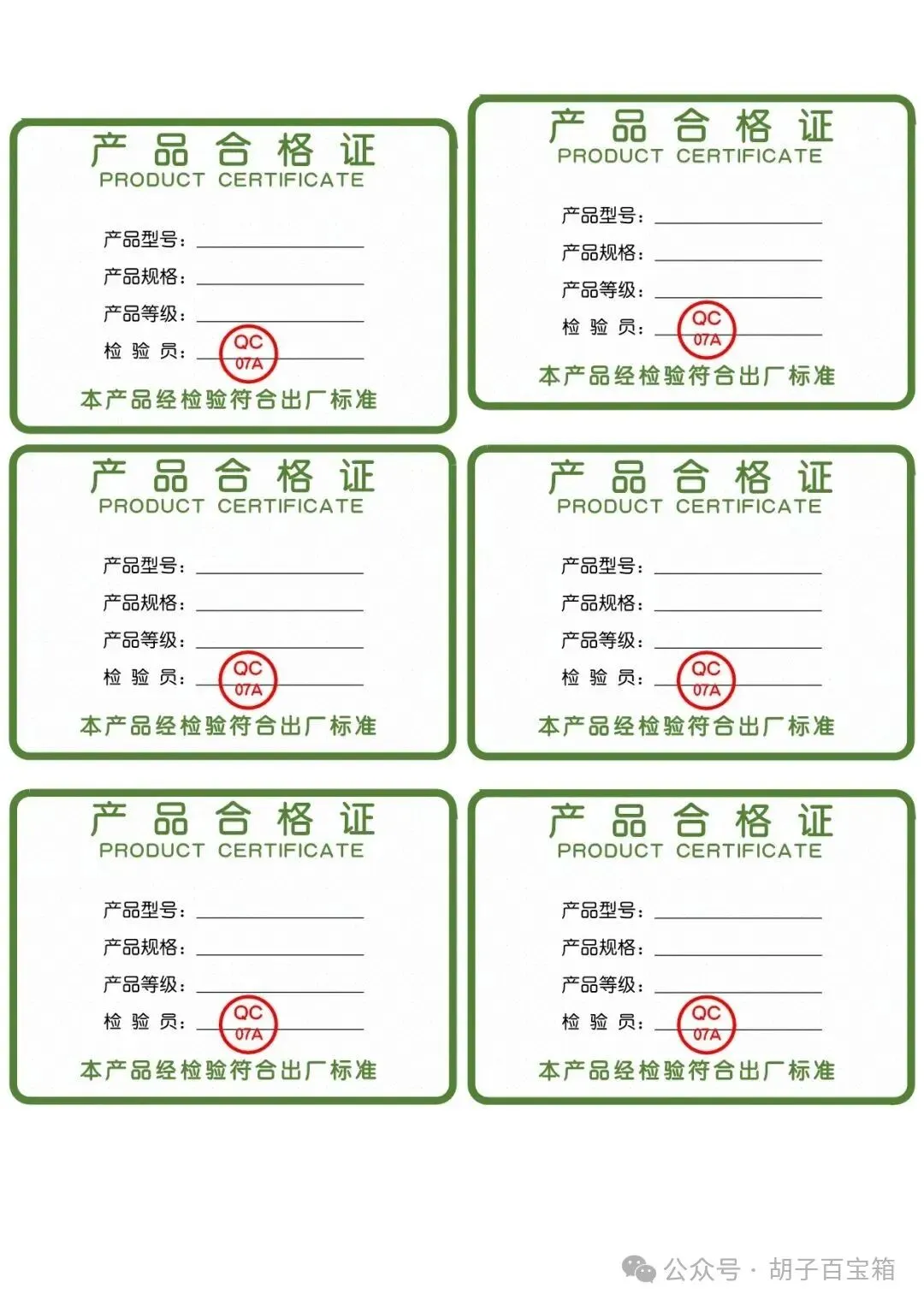 厂家、电商、手作人必存!🔥精心整理15款通用产品合格证标签模板,含Word/PS/AI源文件,支持直接打印编辑!涵盖服装、电子、食品、日用品类目,标准规格+合规要素,省去自行设计烦恼!