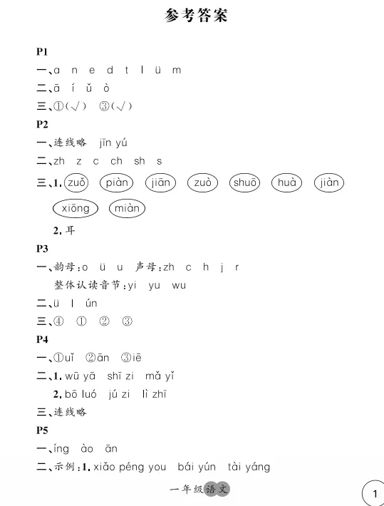 1年级《寒假作业》参考答案