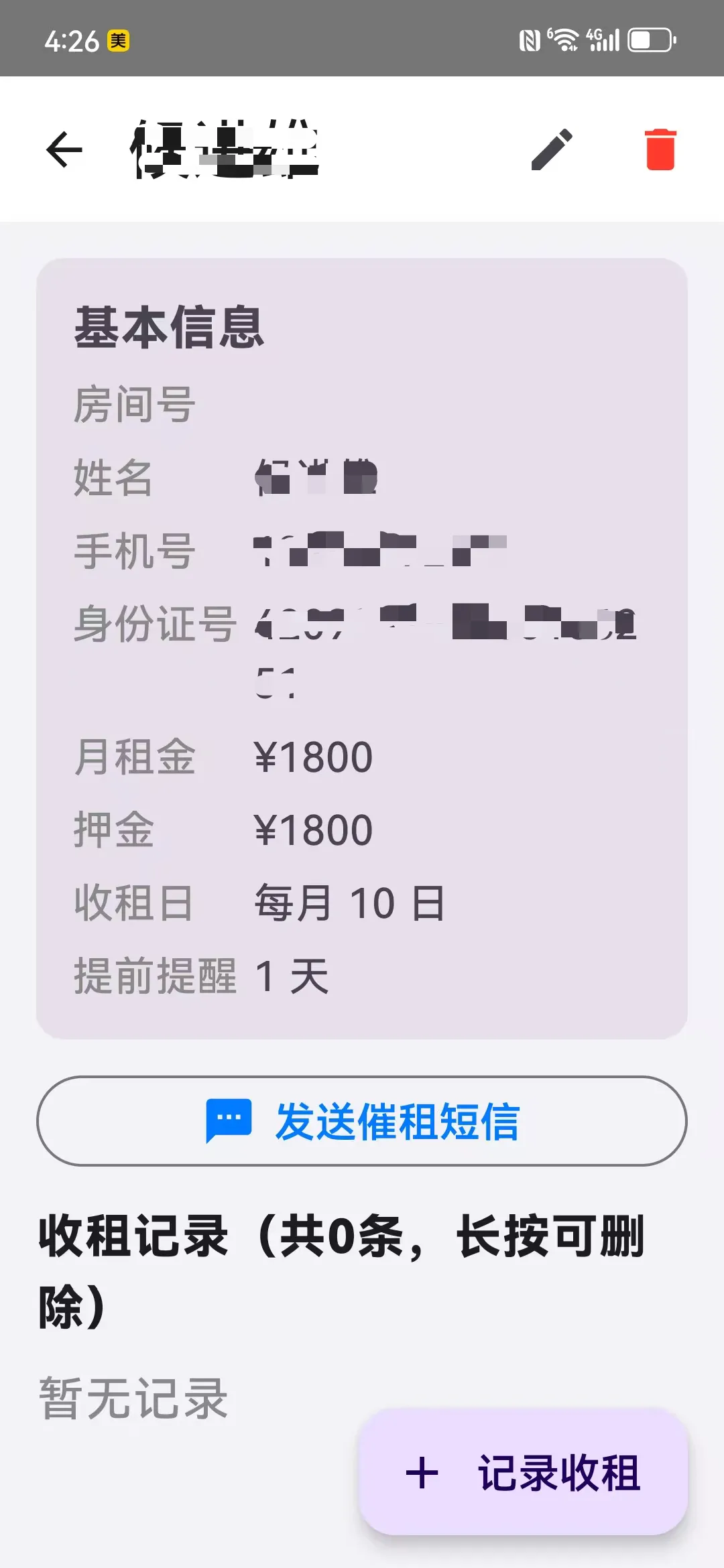 收租遗忘:每个月都需要手动核对哪几户该交租了,然后用微信逐个提醒,偶尔忙起来就会忘记,导致租金延迟。