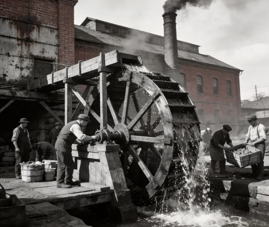 这引出了一个更核心的隐喻:“水车阶段”。在工业革命初期,当蒸汽机被发明出来后,工厂主们做的第一件事,不是重新设计工厂,而是简单地用蒸汽机替换掉原来驱动机器的水车。工厂的布局、流程、位置一切照旧。结果呢?生产力有提升,但提升得相当有限。