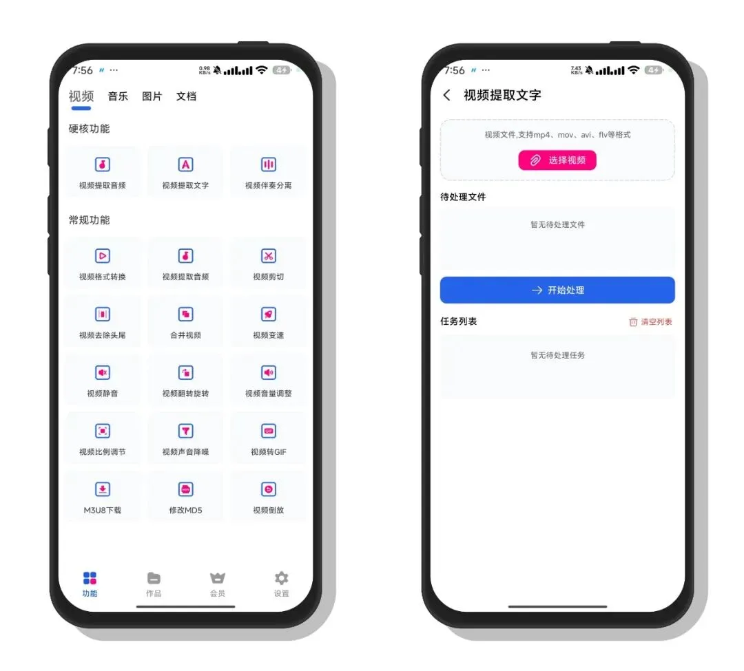格式转换宝是一款集视频、音频、图片、文档处理于一体的全能工具App。它不仅支持主流视频格式互转、视频剪切、变速、静音等常规剪辑功能,还提供视频提取音频/文字、伴奏分离、声音降噪等硬核处理能力,同时覆盖音频编辑、图片处理、文档转换等多场景需求,能一站式满足用户对各类媒体文件的编辑、转换与优化需求,操作便捷,适合日常办公与创作使用。૮ ・ﻌ・ა