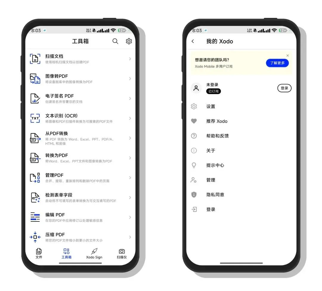 Xodo 把 PDF 工具箱塞进手机:打开文档,双指缩放、夜间模式、目录跳转跟翻书一样顺;荧光笔、下划线、便签批注随手划,签名也能用手指直接描。需要改内容?插入文字、图片,甚至合并拆分页面都能干,转 Word、Excel 一键导出,不用开电脑。