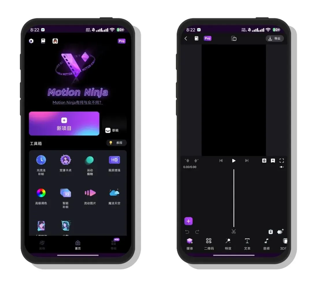 还在羡慕电脑端AE的炫酷特效?还在为手机剪片缺高级功能发愁?今天小姬直接上硬货——MotionNinja视频编辑器,安卓端专属,关键帧、3D特效、光流补帧全都有,让你在手机上也能剪出专业级视频!૮ ・ﻌ・ა