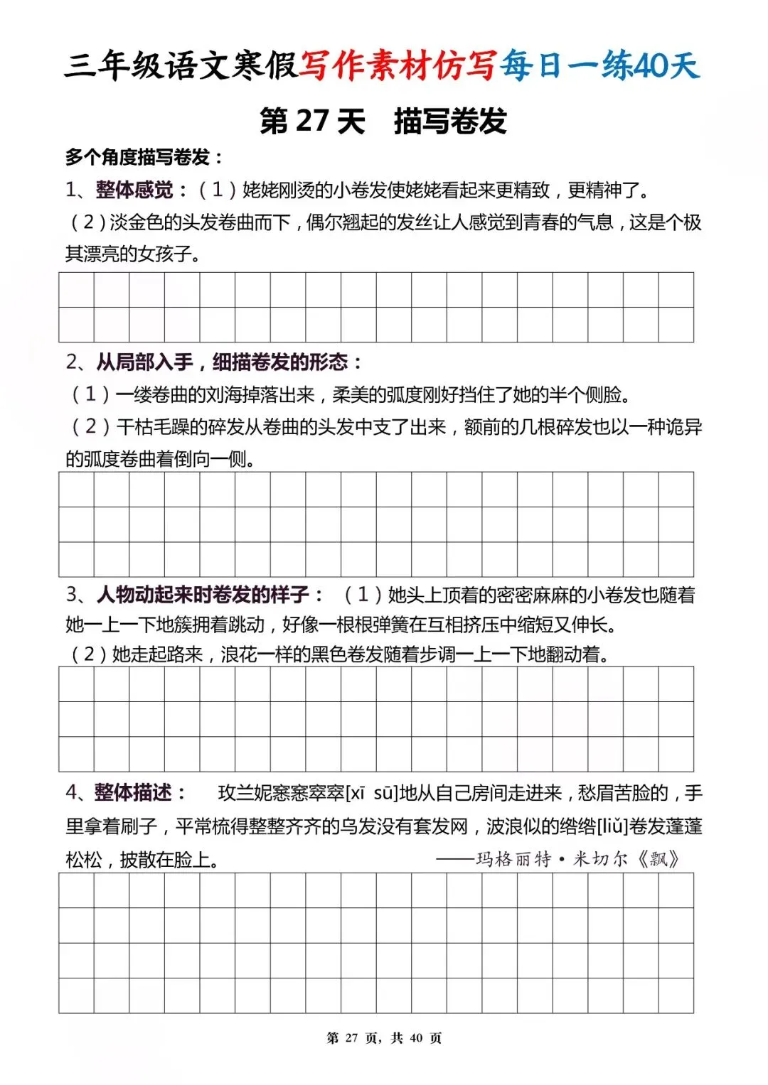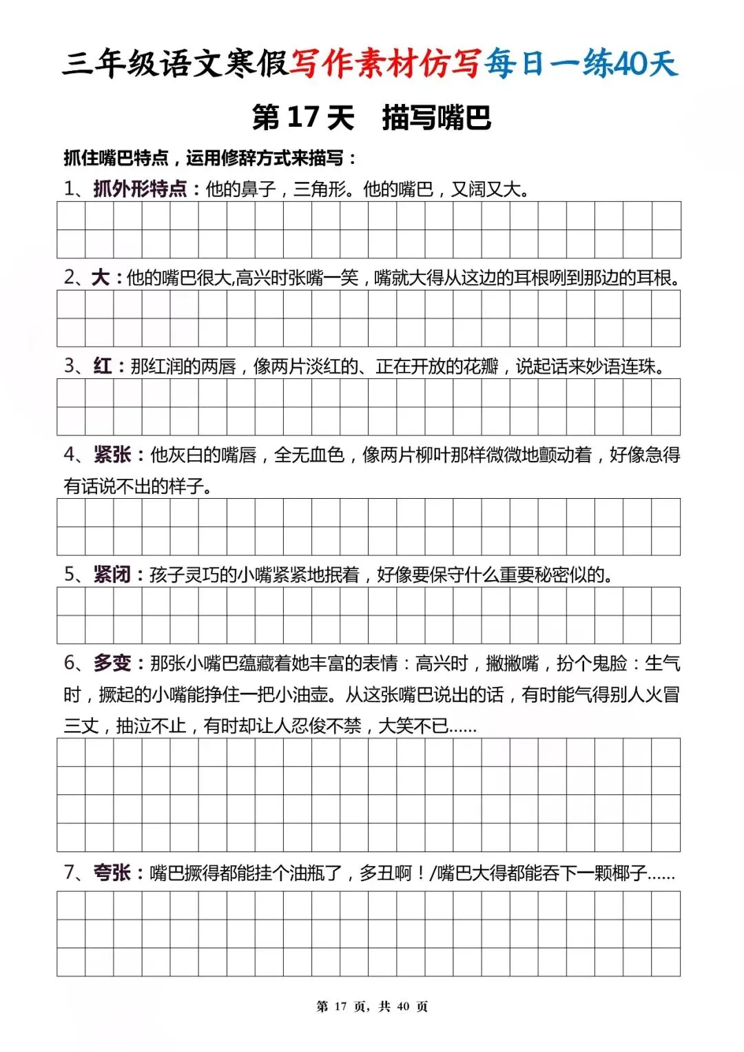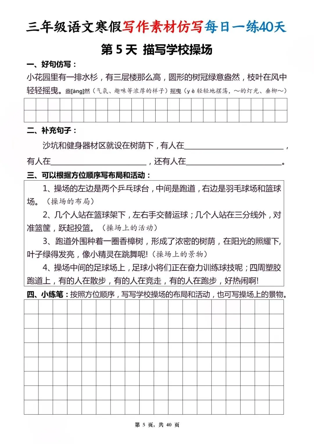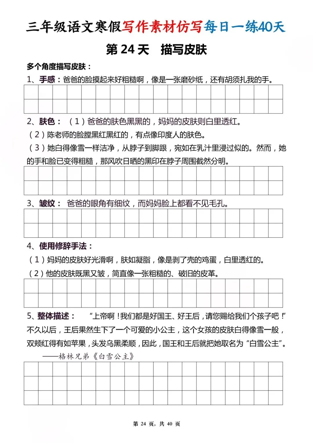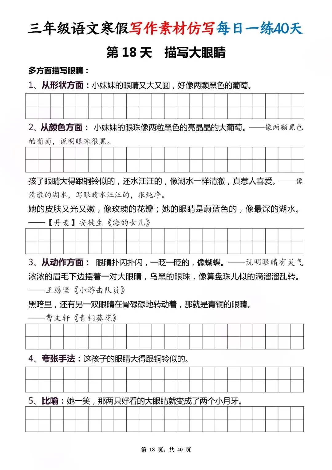 三年级下册语文寒假写作素材仿写每日一练,电子版可打印可下载
