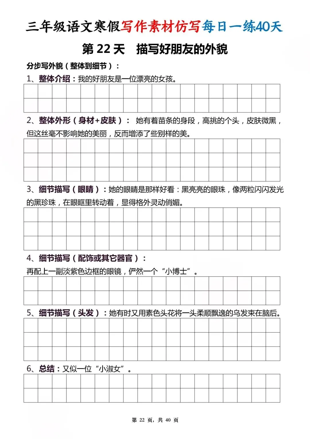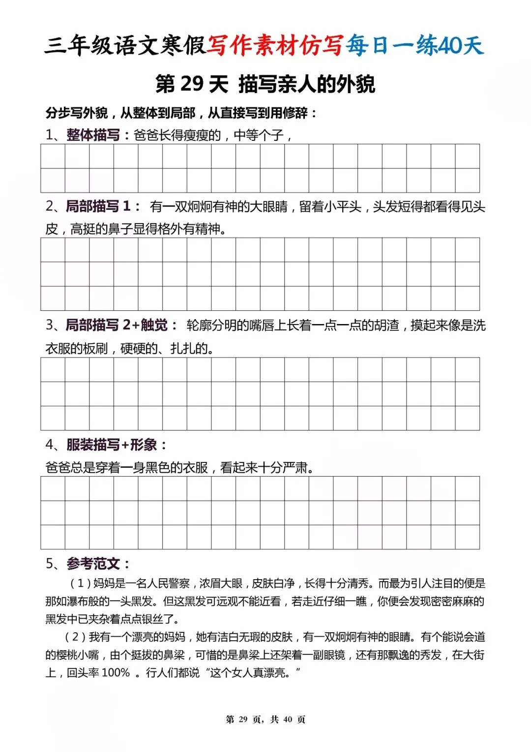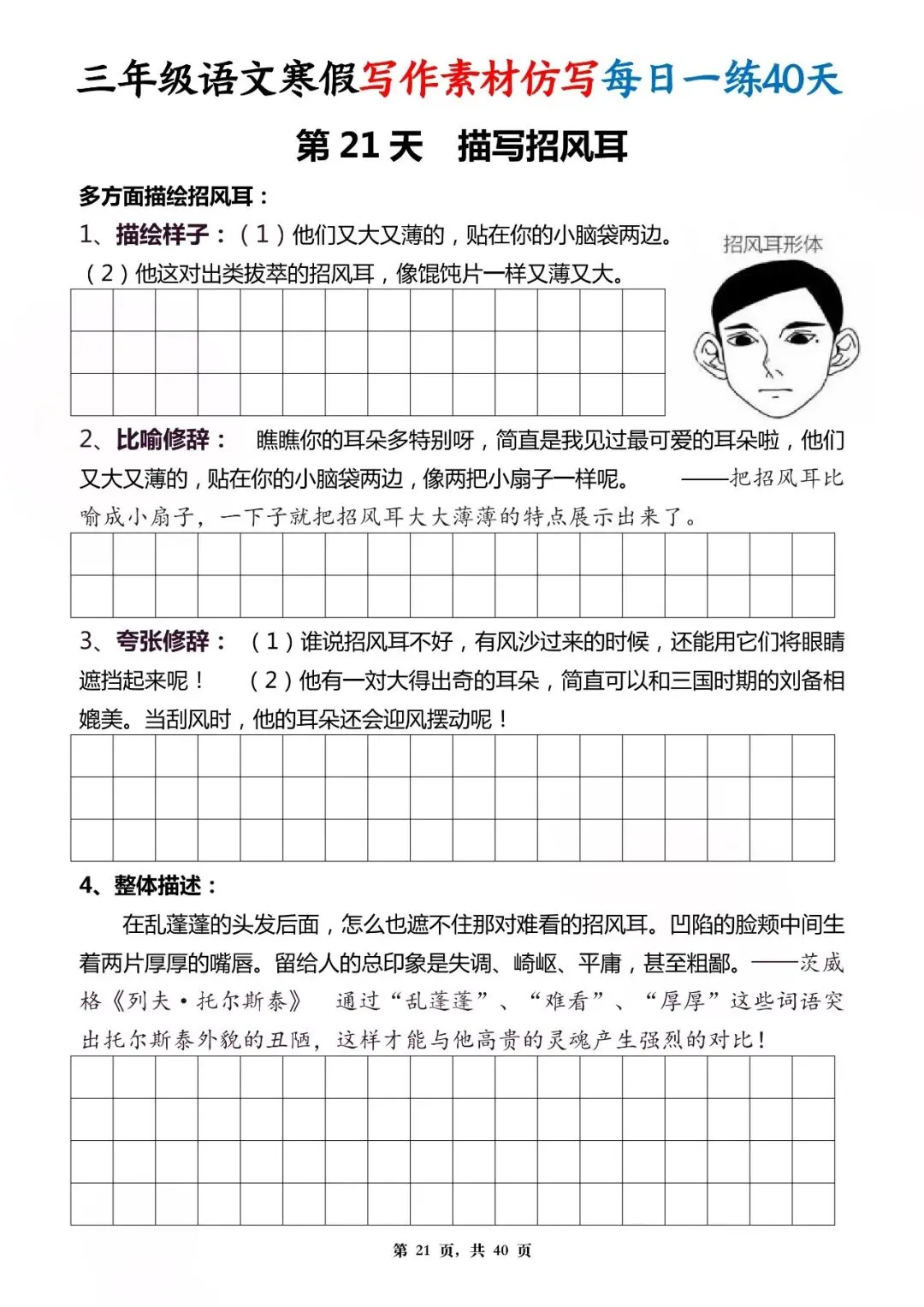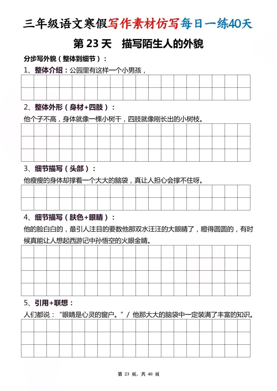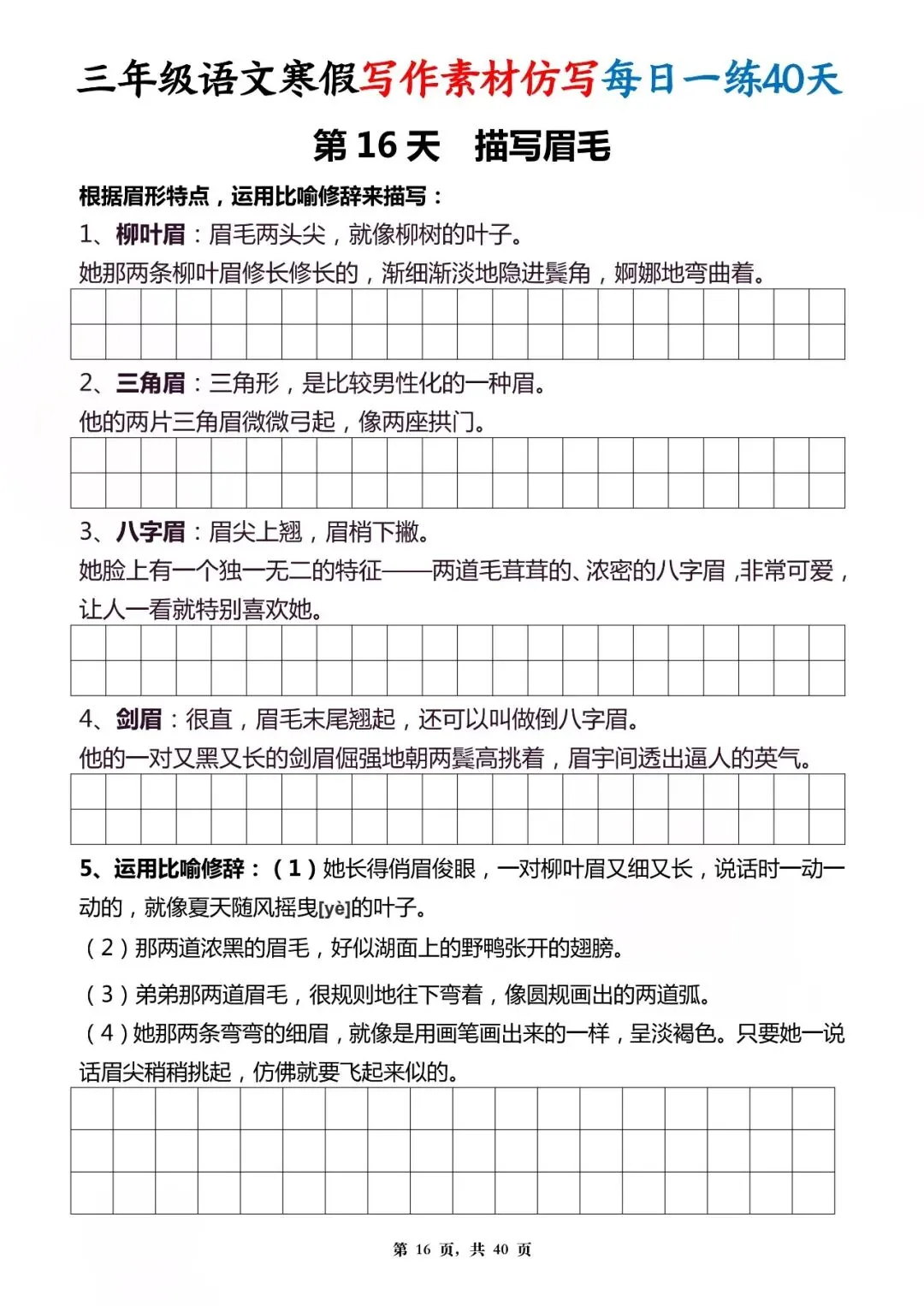 三年级下册语文寒假写作素材仿写每日一练,电子版可打印可下载
