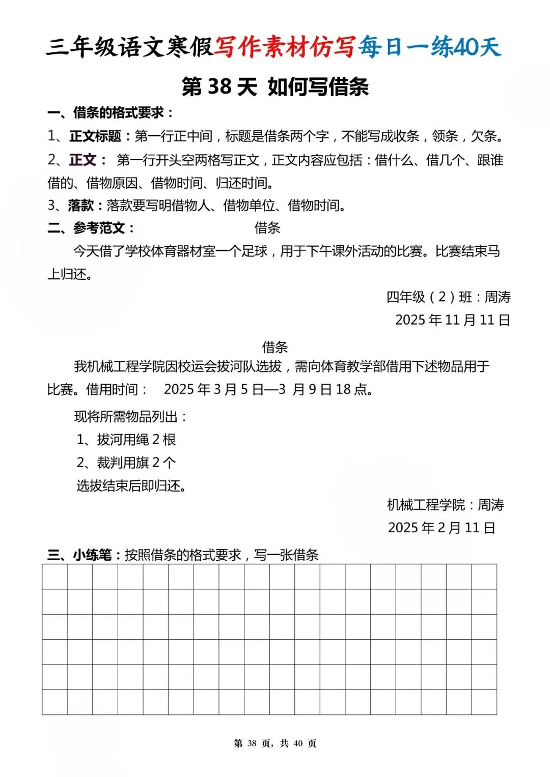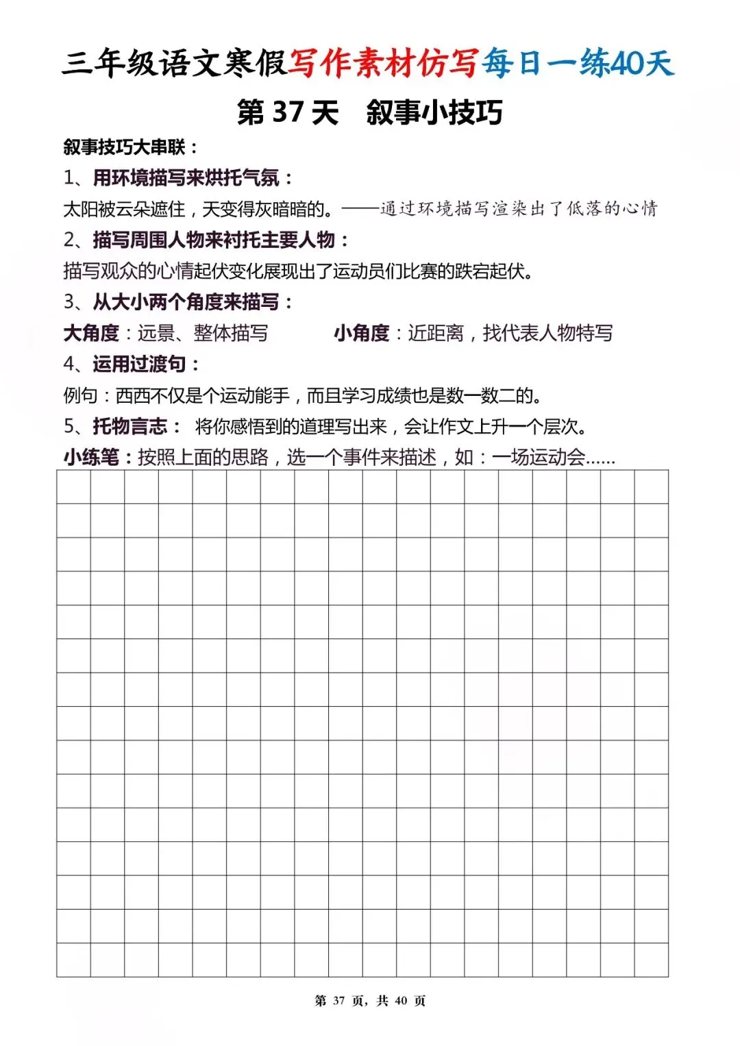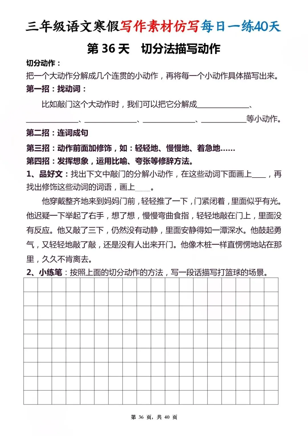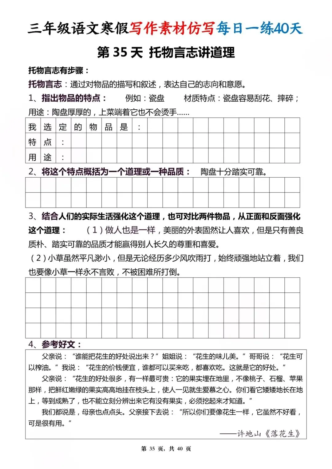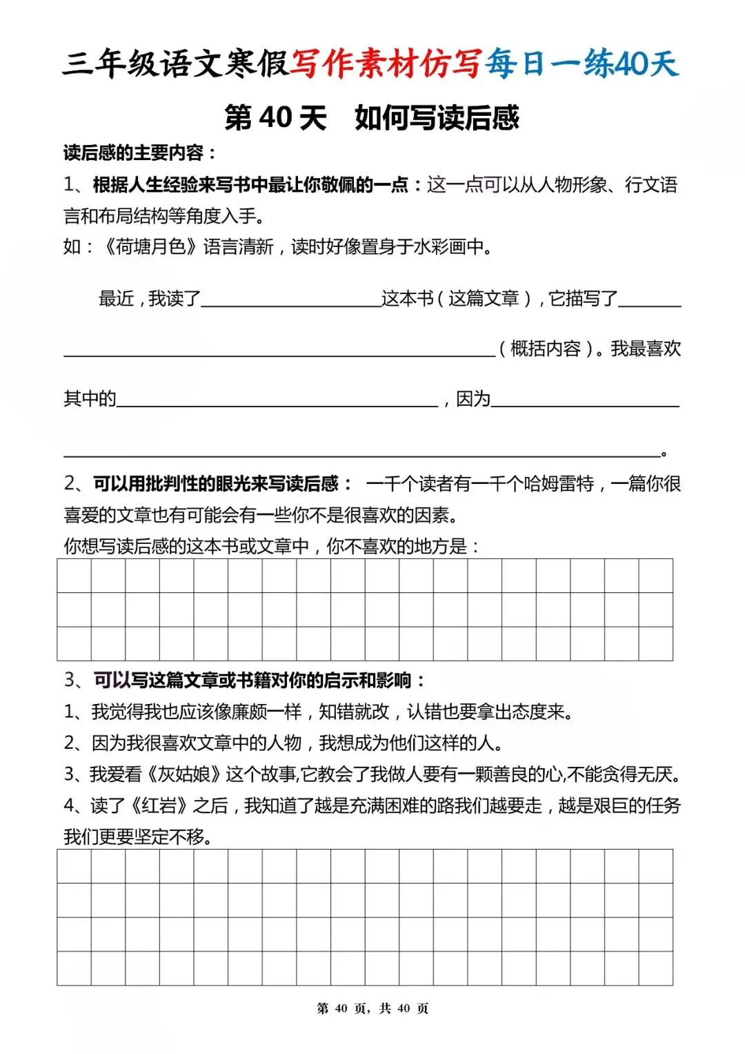 三年级下册语文寒假写作素材仿写每日一练,电子版可打印可下载