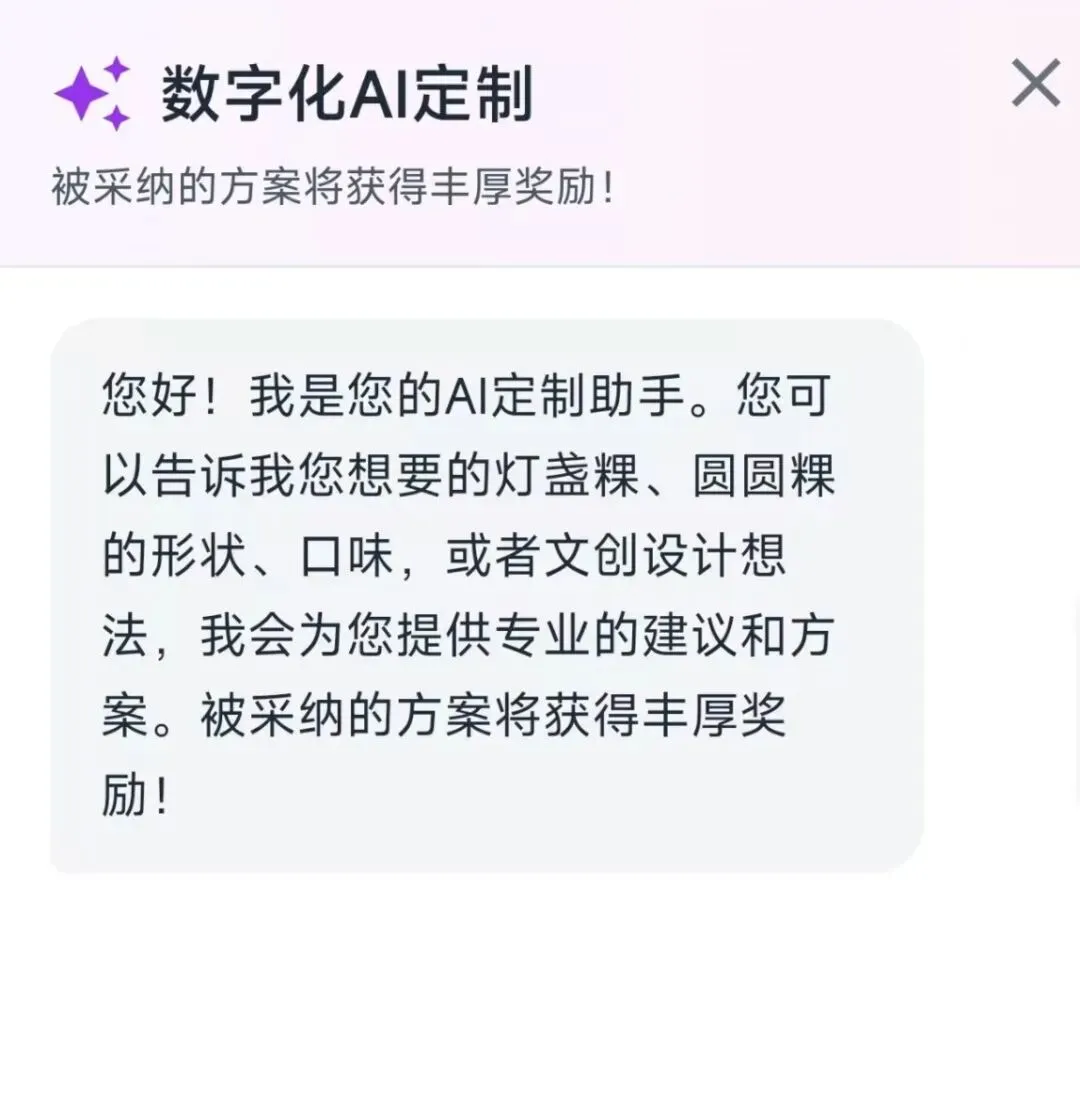 AI定制:告诉智能AI你的需求, AI就可以根据你的描述生成独属于你的独特的灯盏粿和圆圆粿以及文创产品的平面设计。尝试用不同的搭配碰撞出不一样的火花吧!