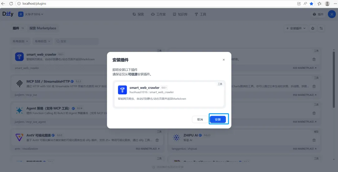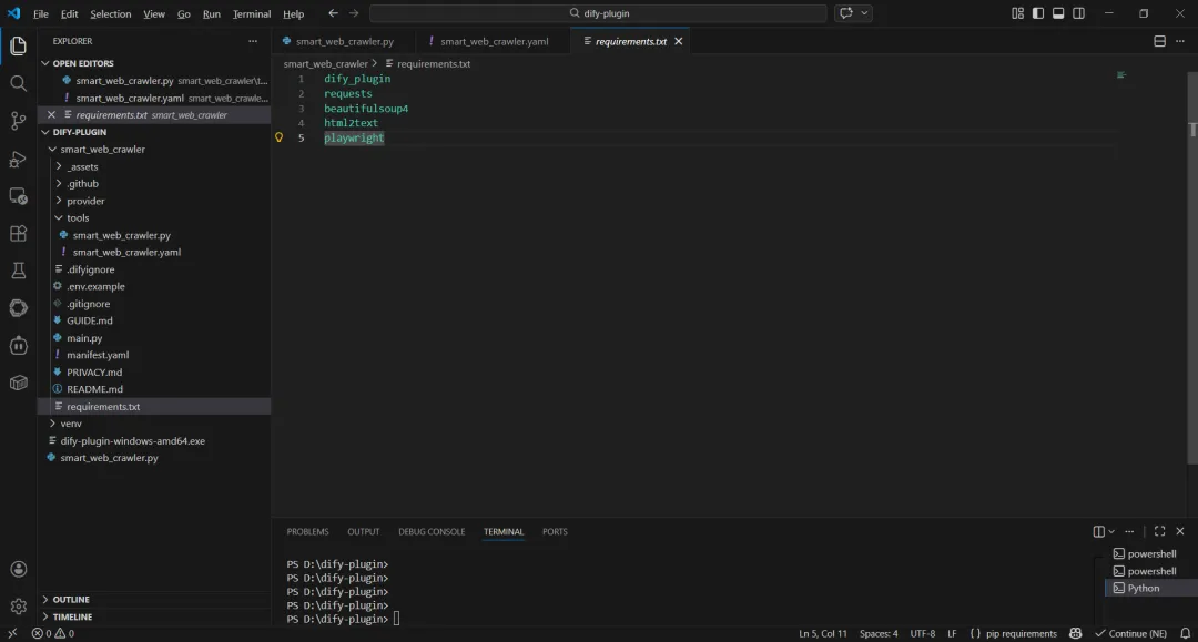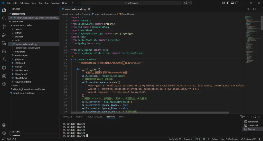 看了dify中的一些插件,例如Firecrawl,WaterCrawl,后边就会涉及到付费,自己就想着制作一个插件,顺便熟悉一下制作插件流程,本次用来测试,成功后会直接开源,大家用起来也方便,下边输出自己的具体步骤。