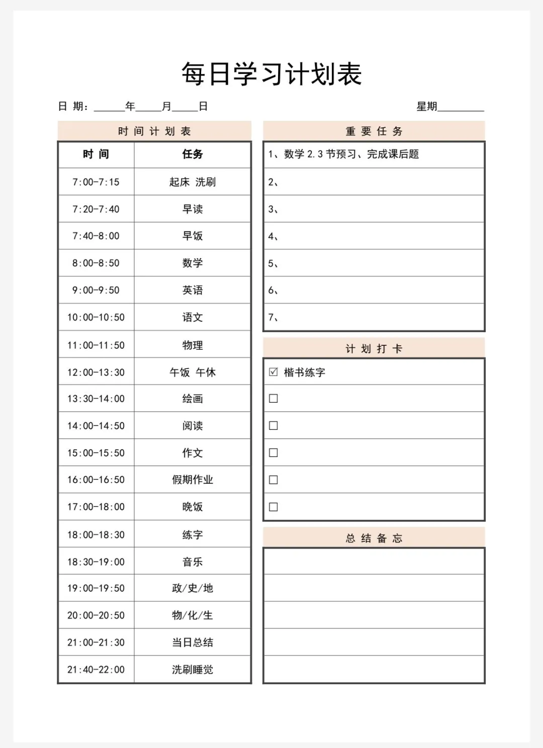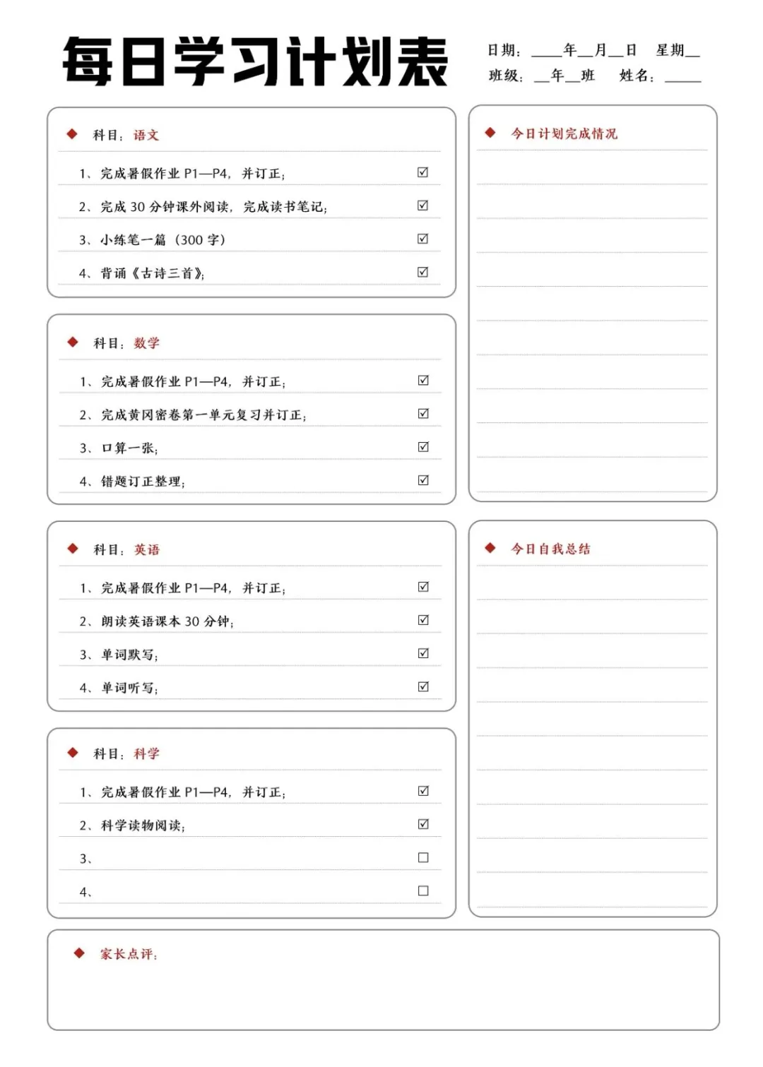 100款自律学习计划表、寒假学习计划表可编辑可打印【免费分享】