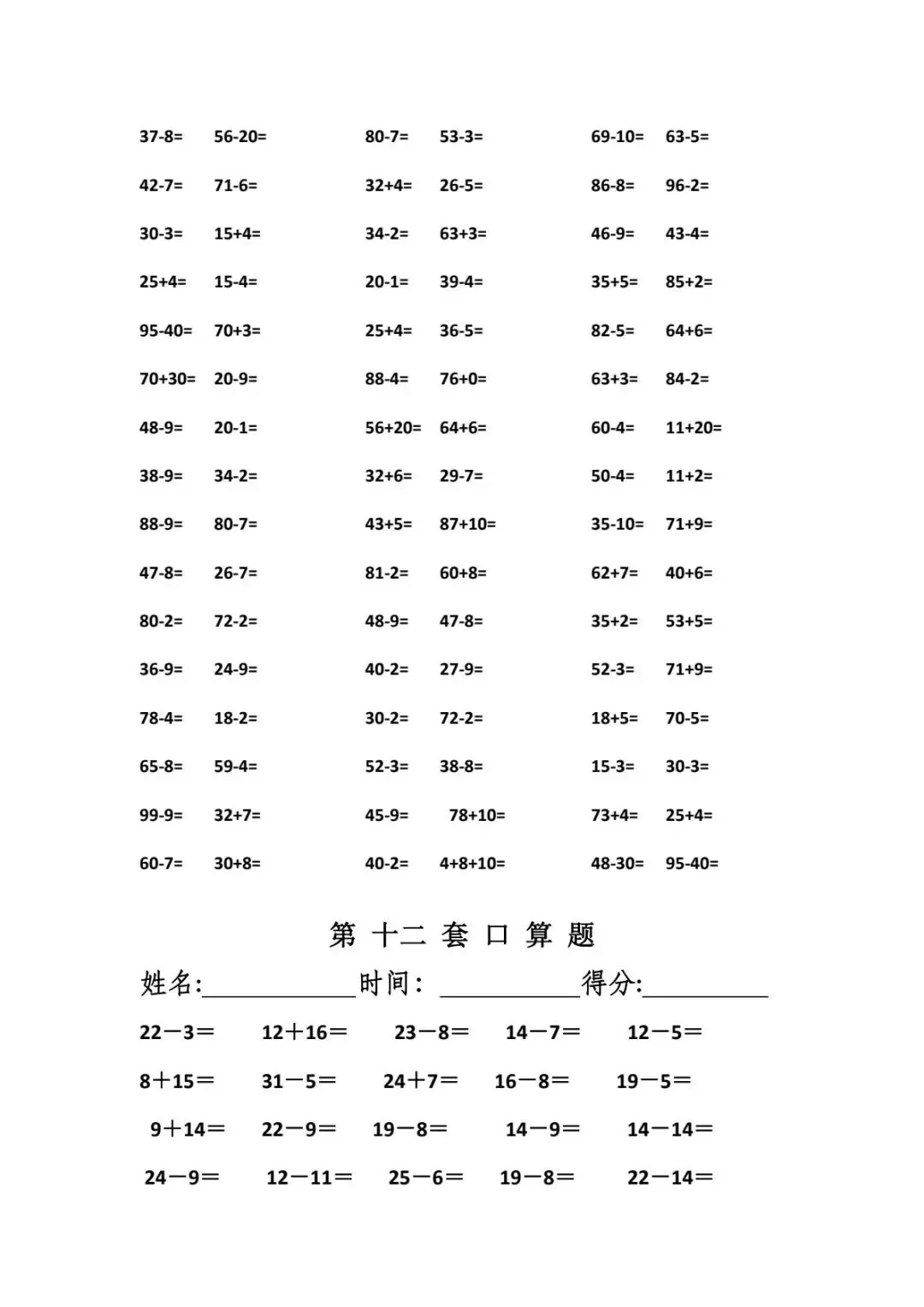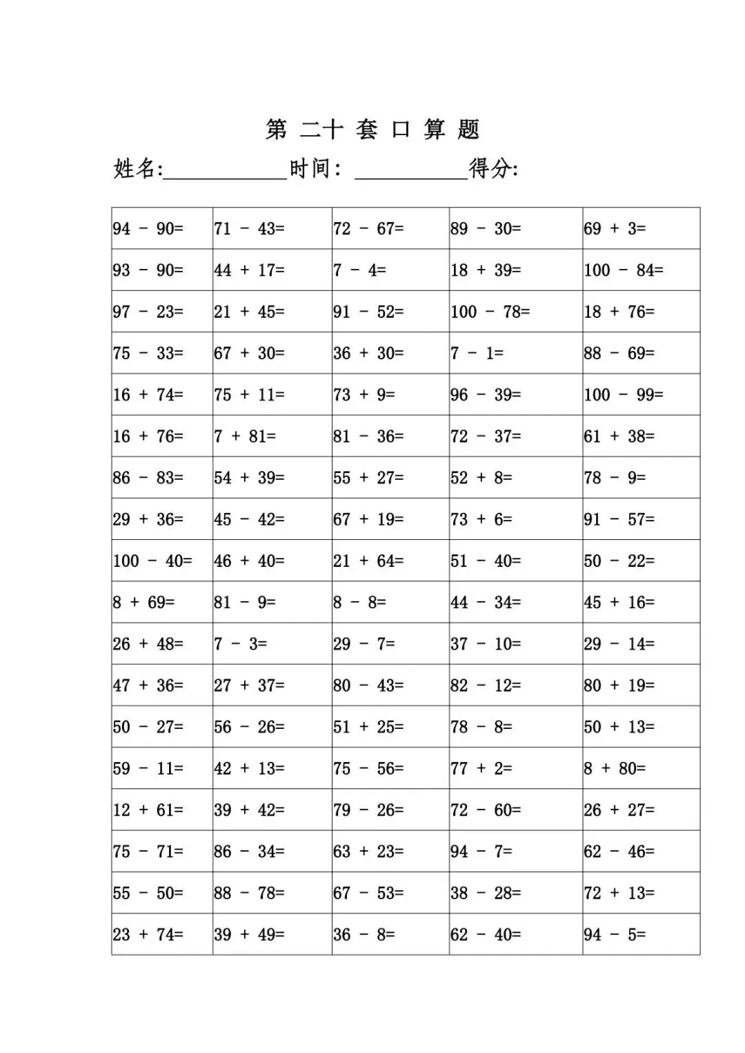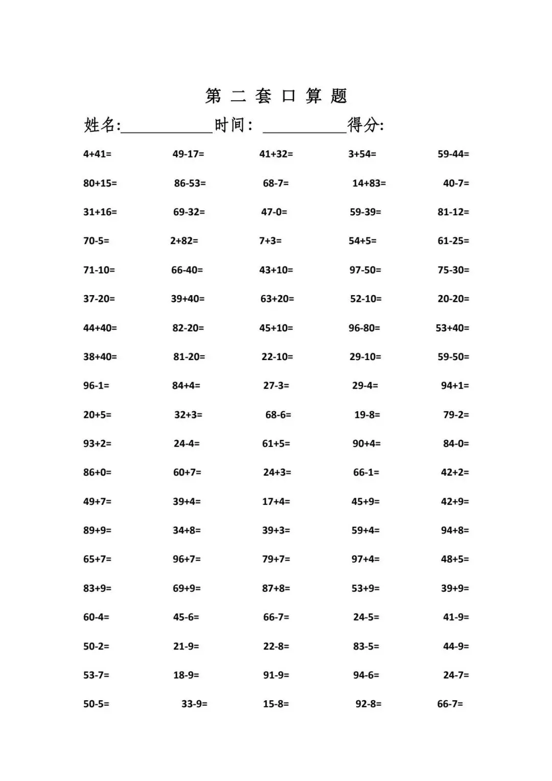 一年级数学下册口算题,1-6年级完整电子版文末有打印方法.