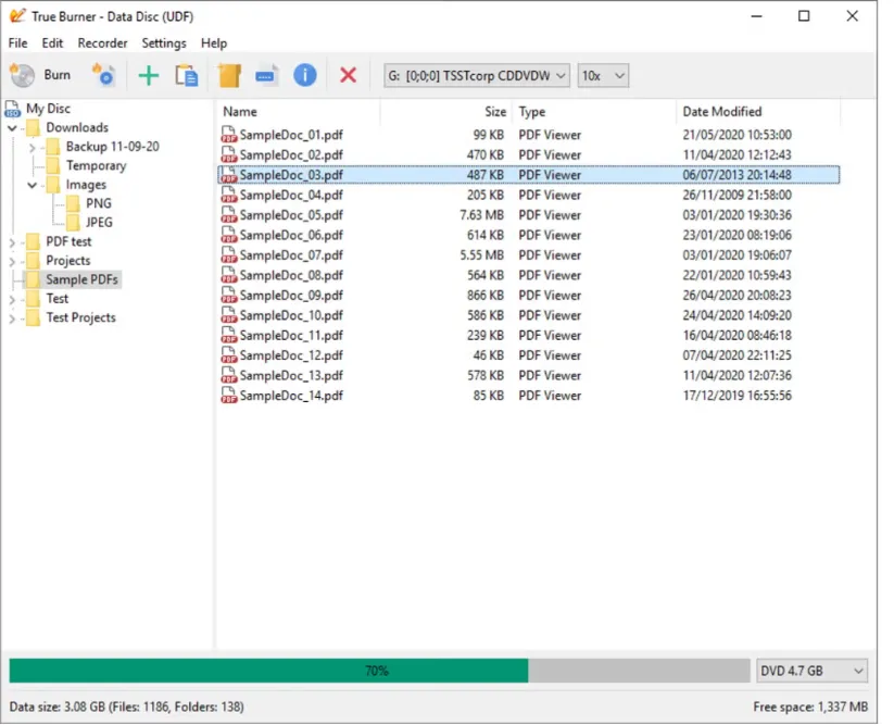 用户友好界面:True Burner拥有简洁直观的用户界面,使用户易于操作和使用。快速刻录速度:支持高速刻录,可以快速完成光盘刻录过程。兼容性强:支持刻录各种类型的光盘,包括CD-R、CD-RW、DVD-R、DVD+R、DVD-RW、DVD+RW、DVD-RAM和蓝光光盘。多种刻录选项:True Burner提供了多种刻录选项,如刻录速度、缓冲区保护和校验功能,以满足不同用户的需求。免费使用:True Burner是一款完全免费的软件,用户无需支付任何费用即可享受其中的所有功能。