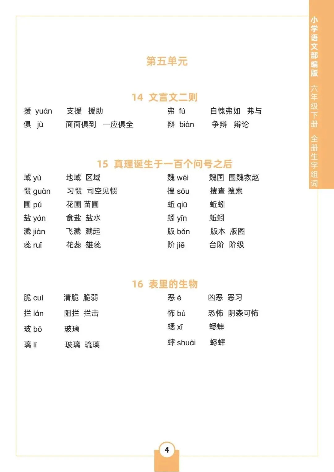 人教统编版语文六年级下册《全册生字组词》电子版可下载打印
