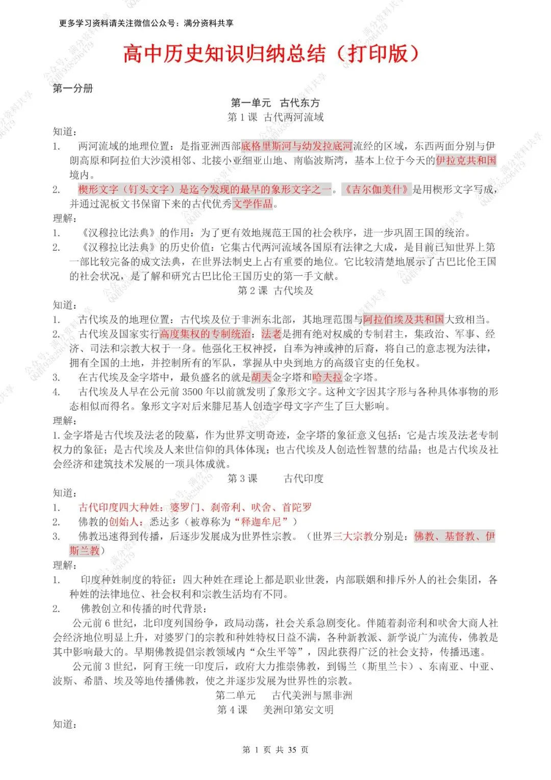 超详细高中历史知识点归纳汇总(pdf分享) 点击图片可观看高清版,文末有获取打印版方式 (完整版35页,部分展示) 领取完整电子版: ①:点一点右下角的“赞”和“在看”,感谢! ②:点击“关注”回复“高中资料”获取资料 点击下方“公众号”关注,可以进入主页哦!