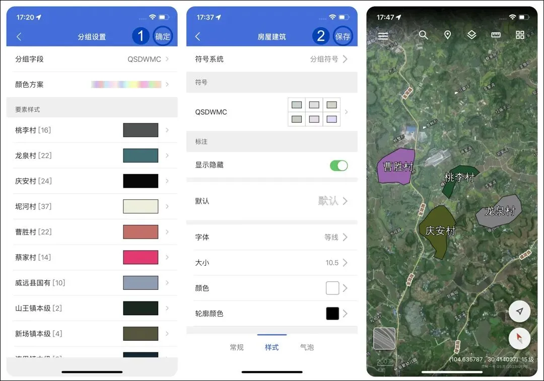 分组设置保存后,地图区域要素根据设置参数样式进行显示。
