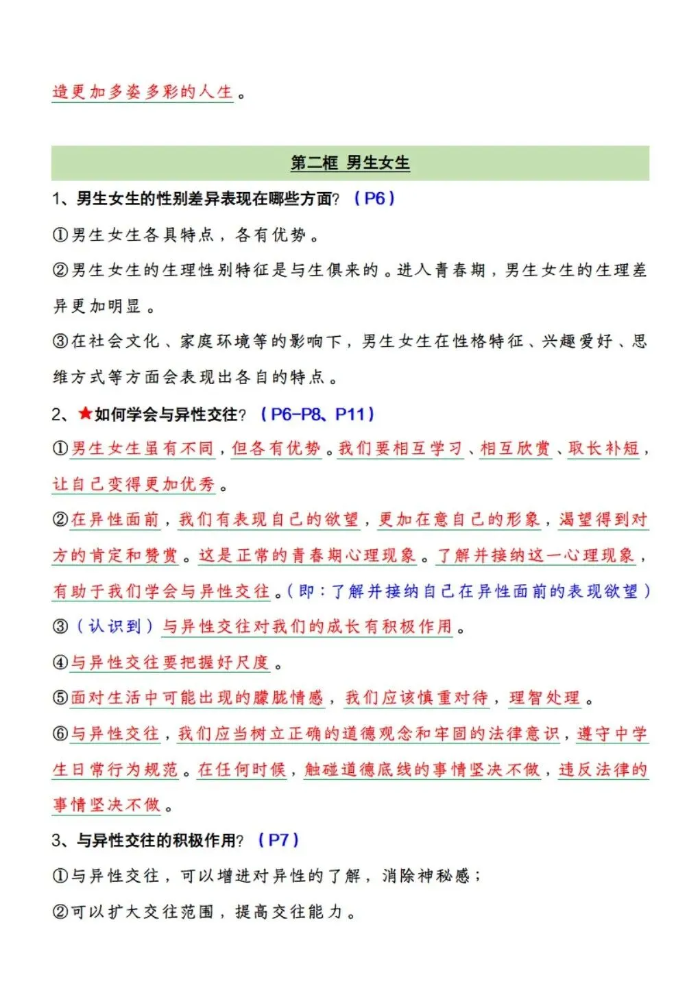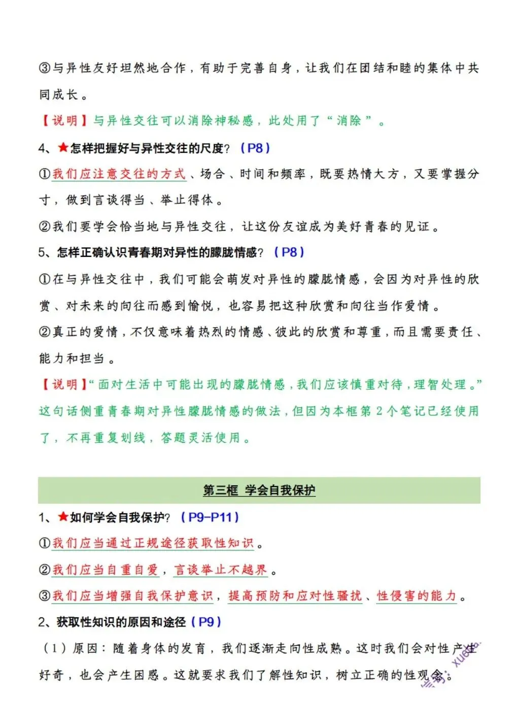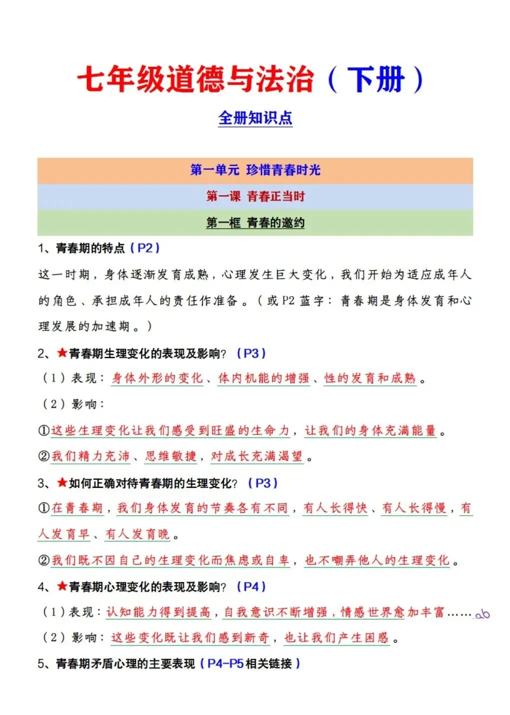 2026版七年级下册道法全册预习知识点清单,可打印电子版!