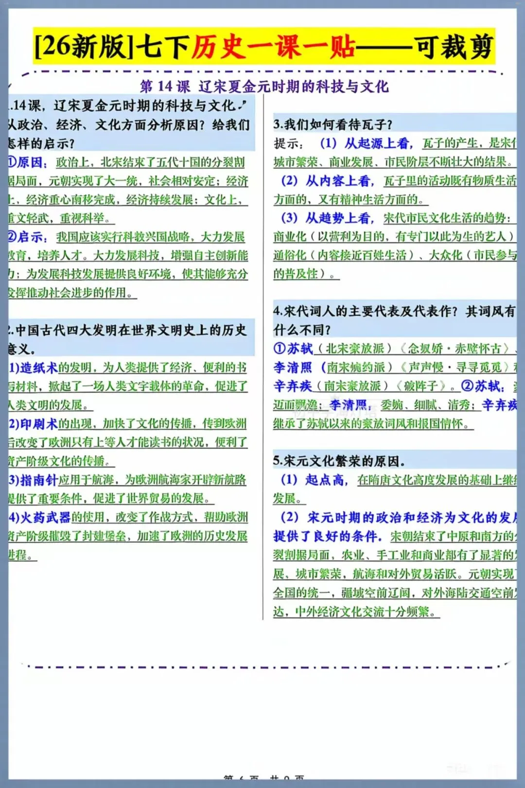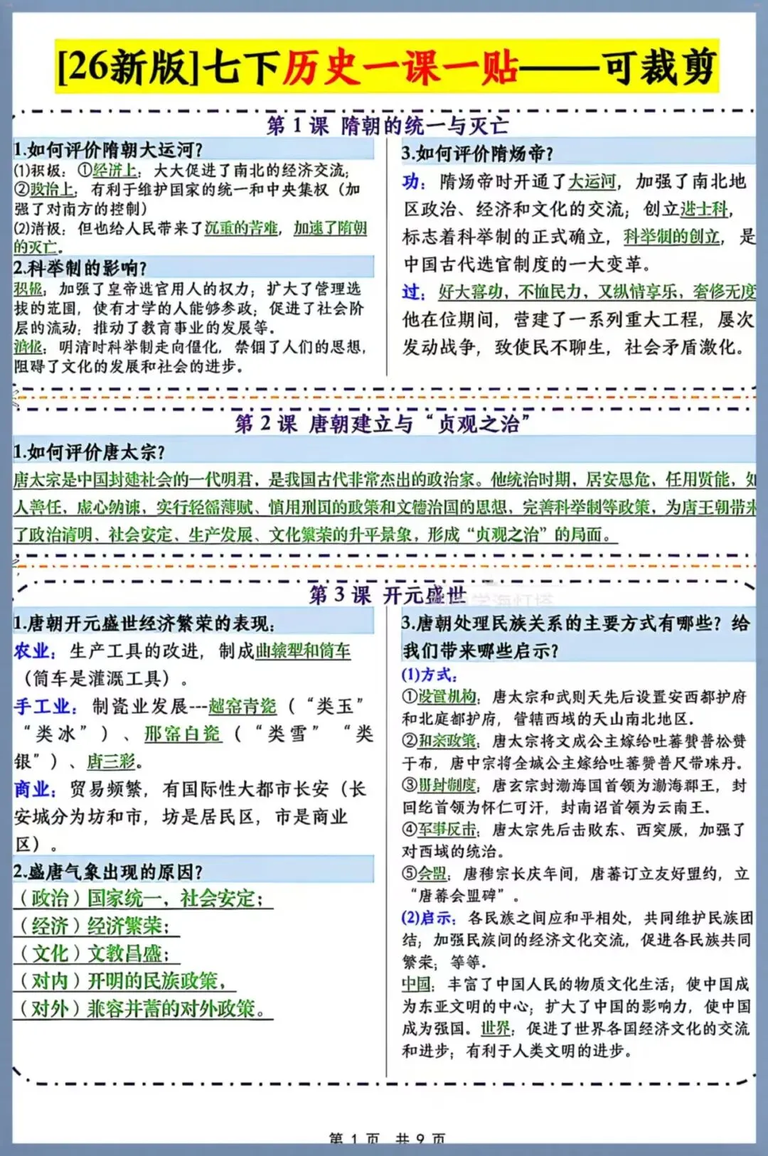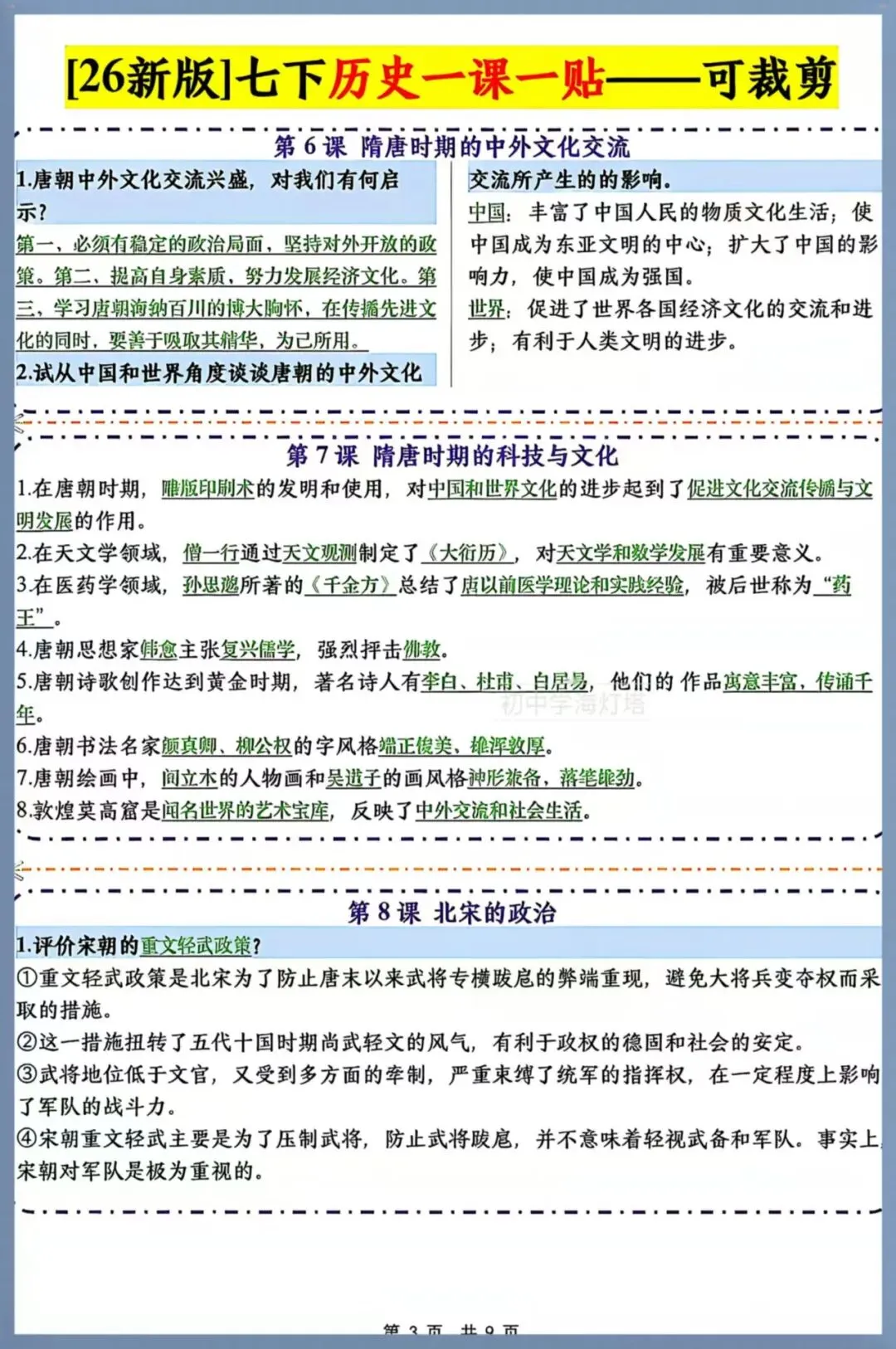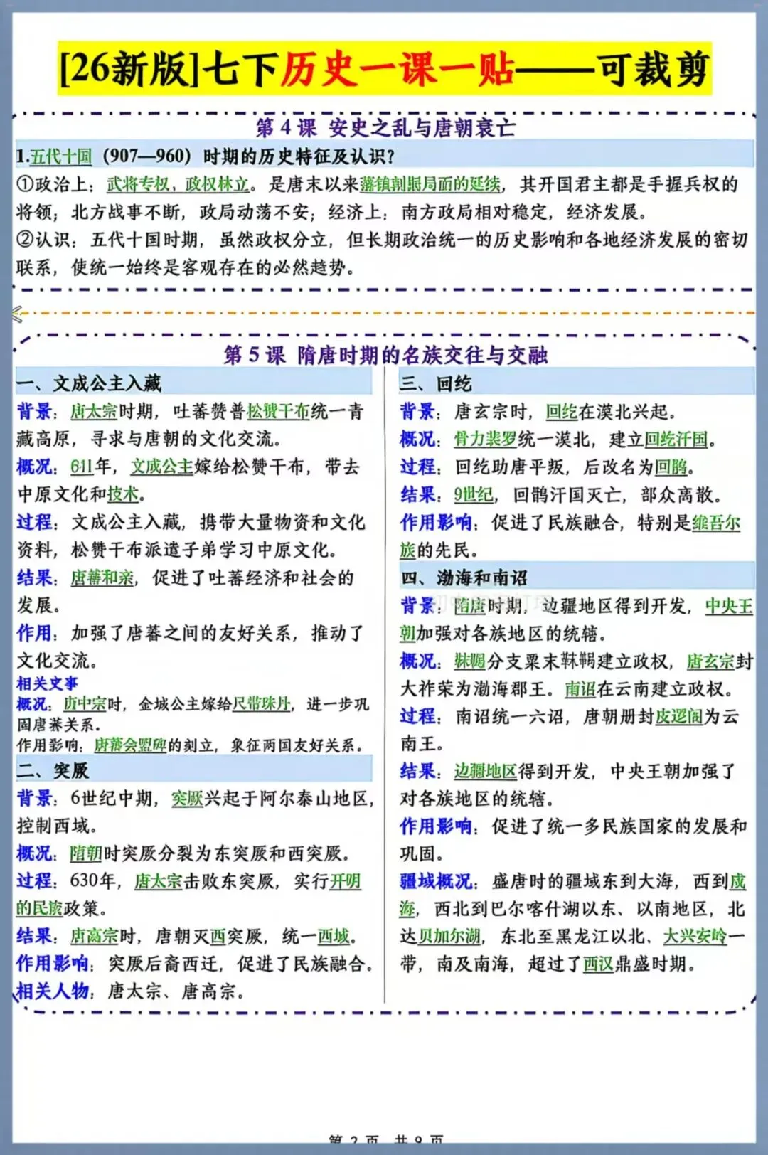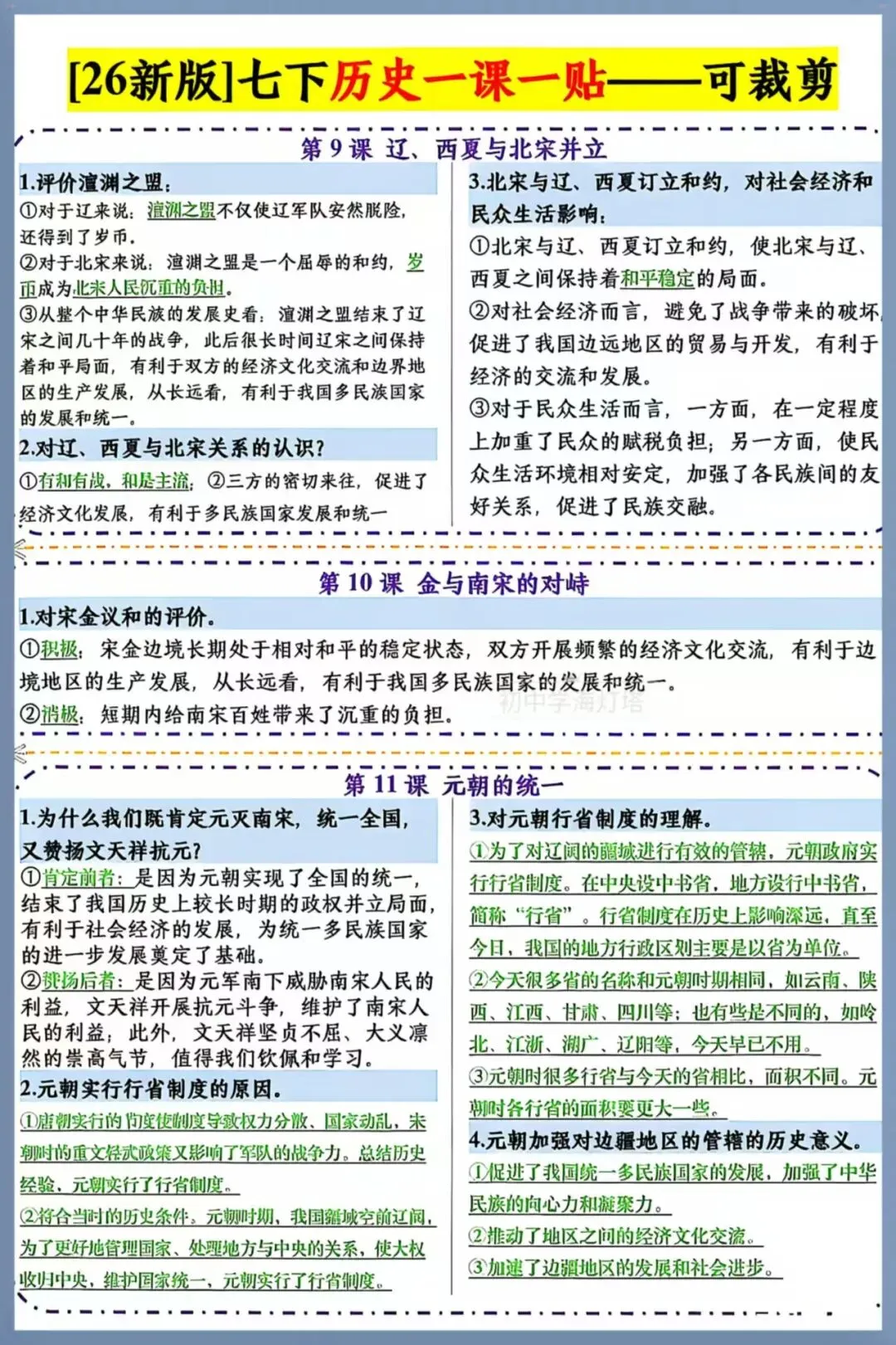 2026春【部编版】七年级下册〈历史〉21课知识点《一课一贴》可裁剪,可下载打印!