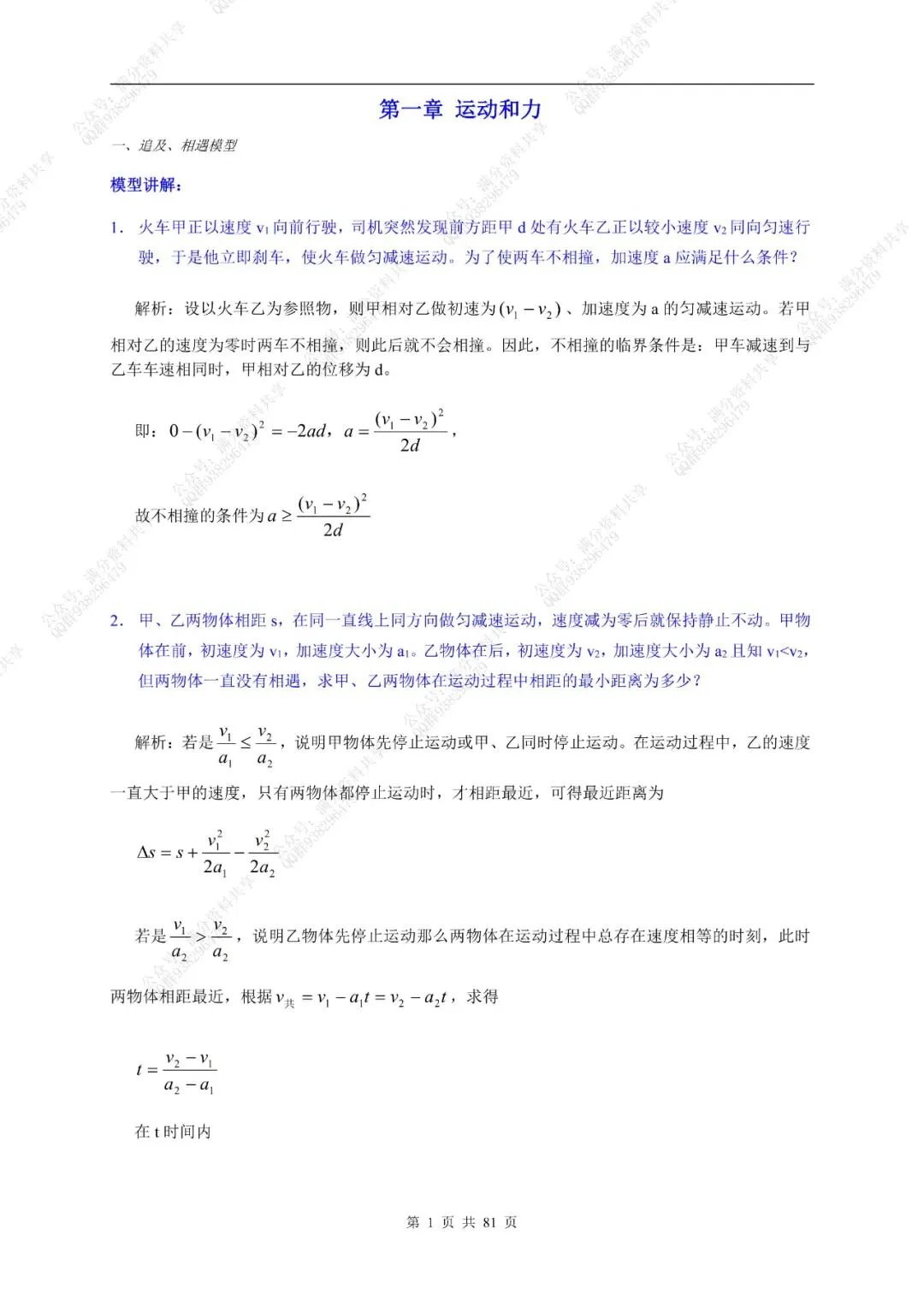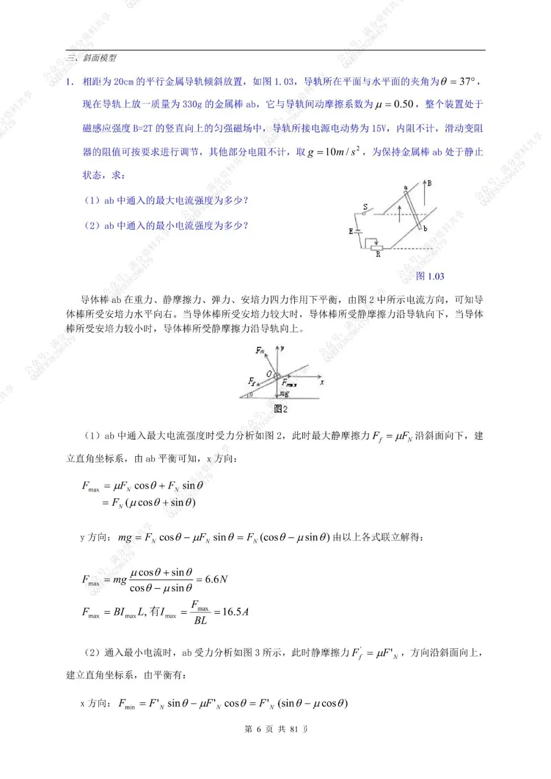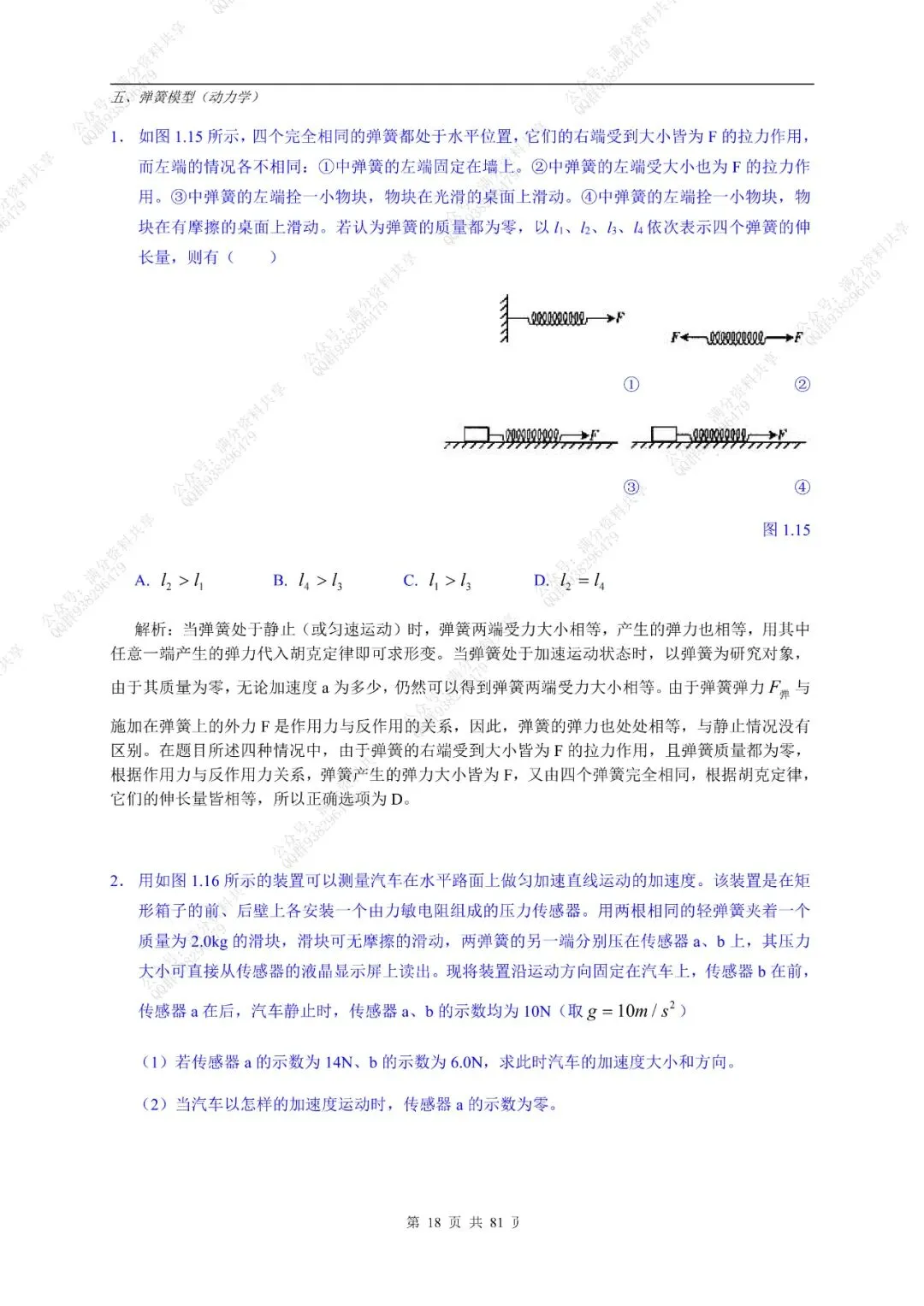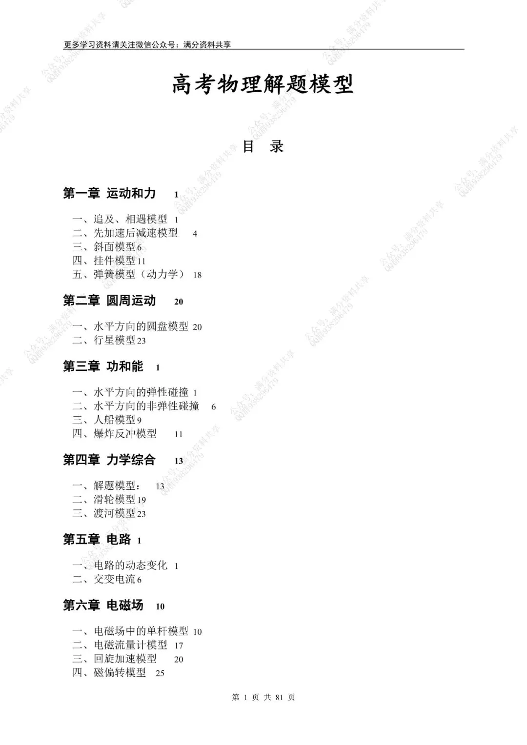 高中物理解题模型详解(20套精讲)(pdf分享) 点击图片可观看高清版,文末有获取打印版方式 (完整版81页,部分展示) 领取完整电子版: ①:点一点右下角的“赞”和“在看”,感谢! ②:点击“关注”回复“高中资料”获取资料 点击下方“公众号”关注,可以进入主页哦!