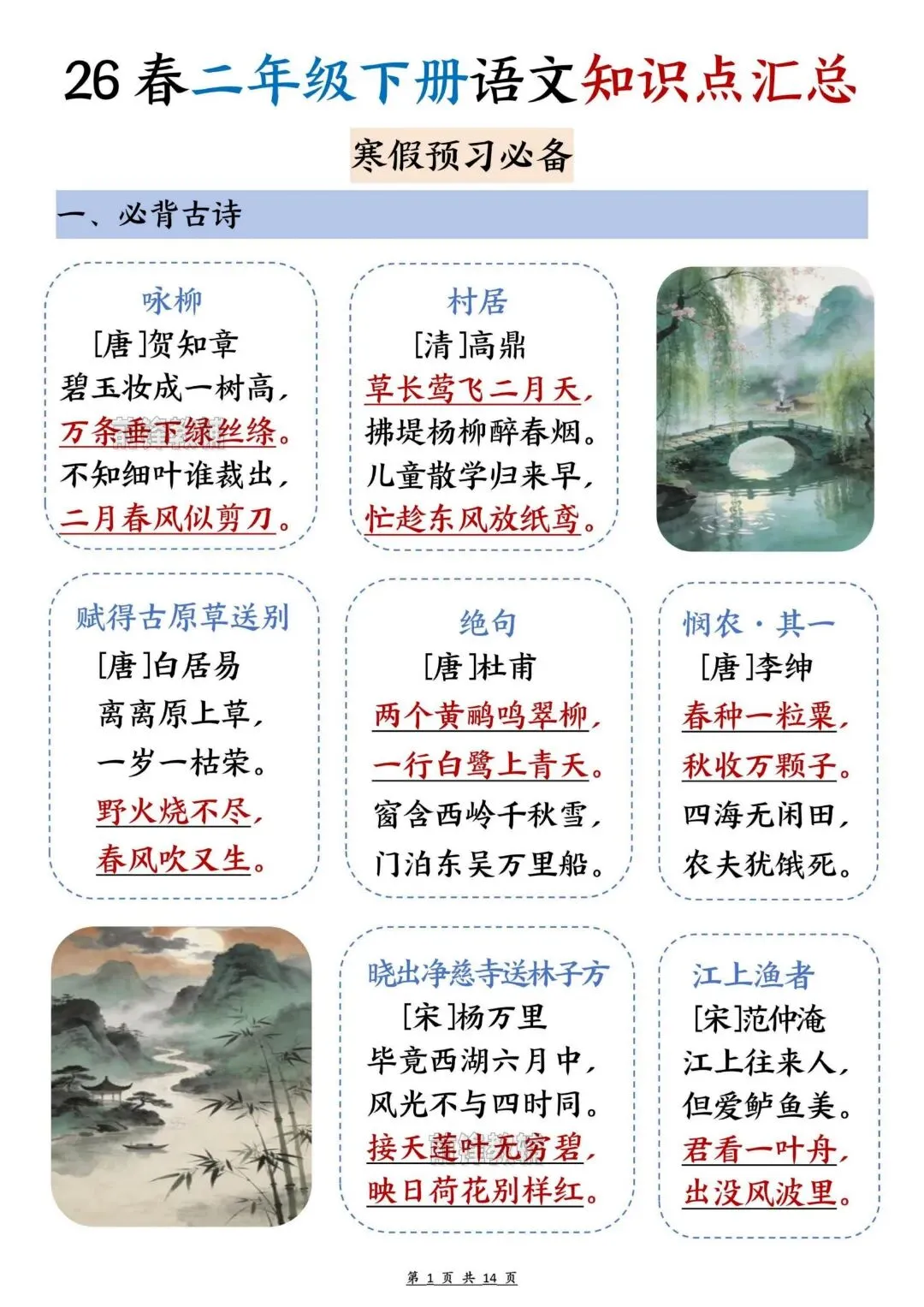 26春人教部编版二年级下册【语文预习知识点汇总】|完整电子版可打印
