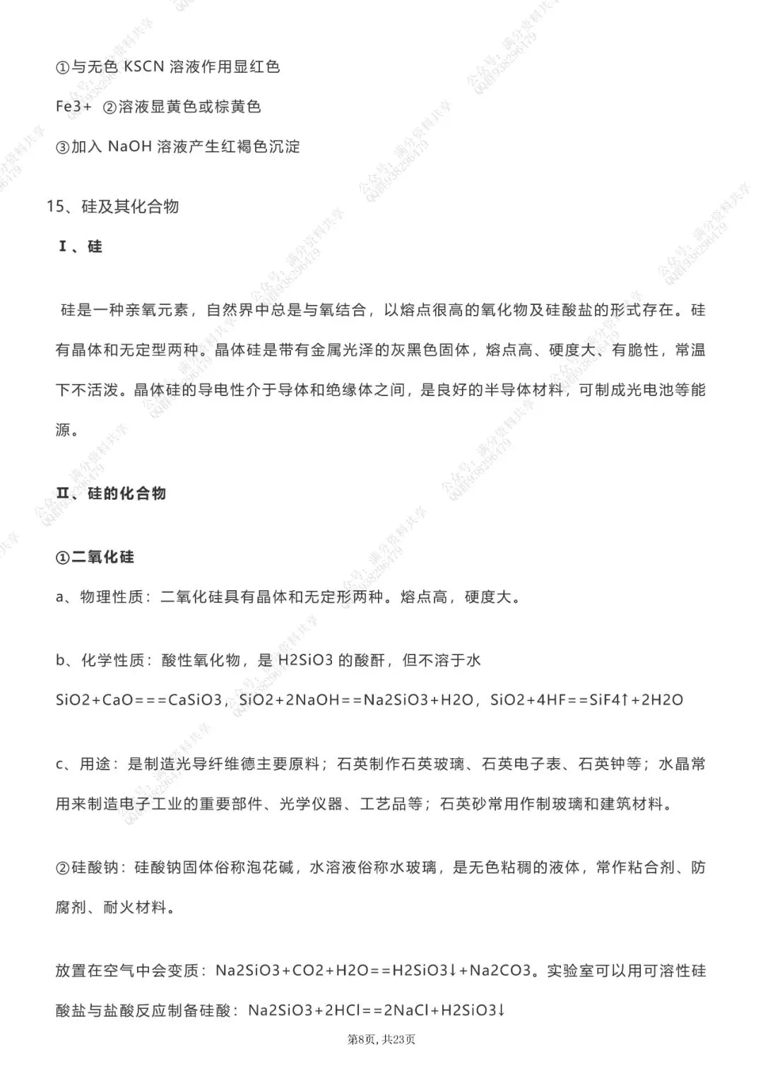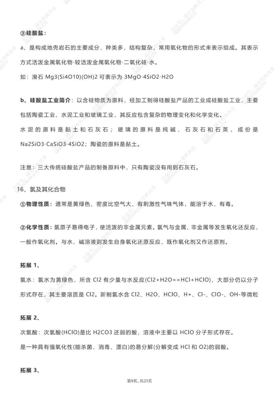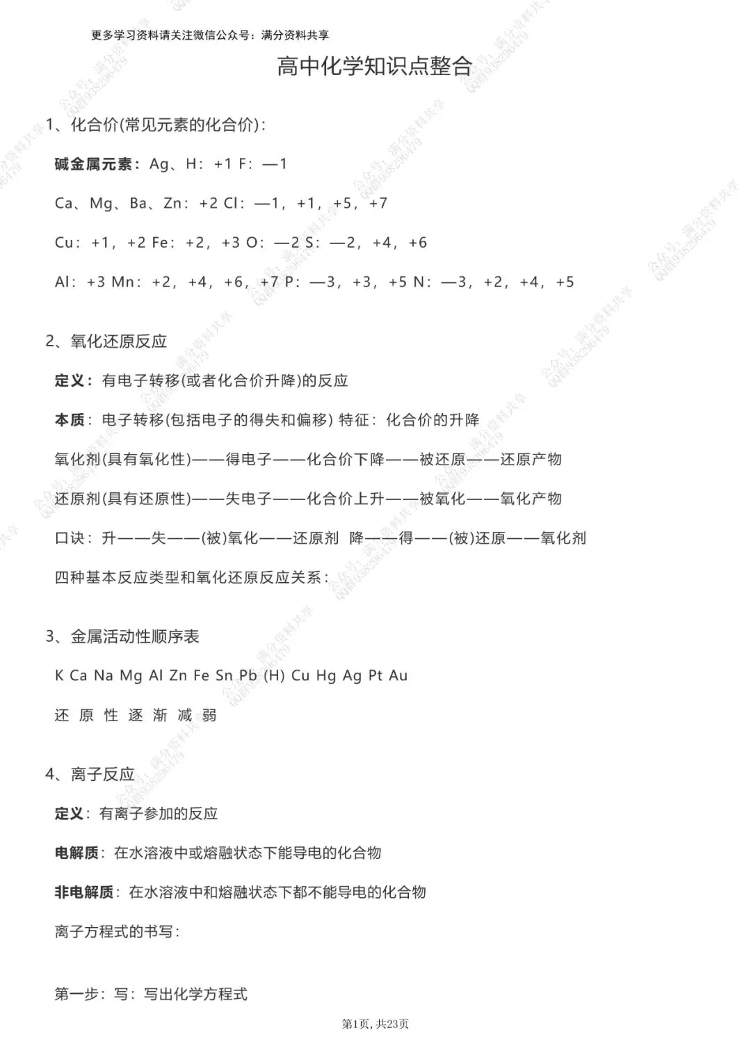 高中化学知识点整合(pdf分享) 点击图片可观看高清版,文末有获取打印版方式 (完整版23页,部分展示) 领取完整电子版: ①:点一点右下角的“赞”和“在看”,感谢! ②:点击“关注”回复“高中资料”获取资料 点击下方“公众号”关注,可以进入主页哦!