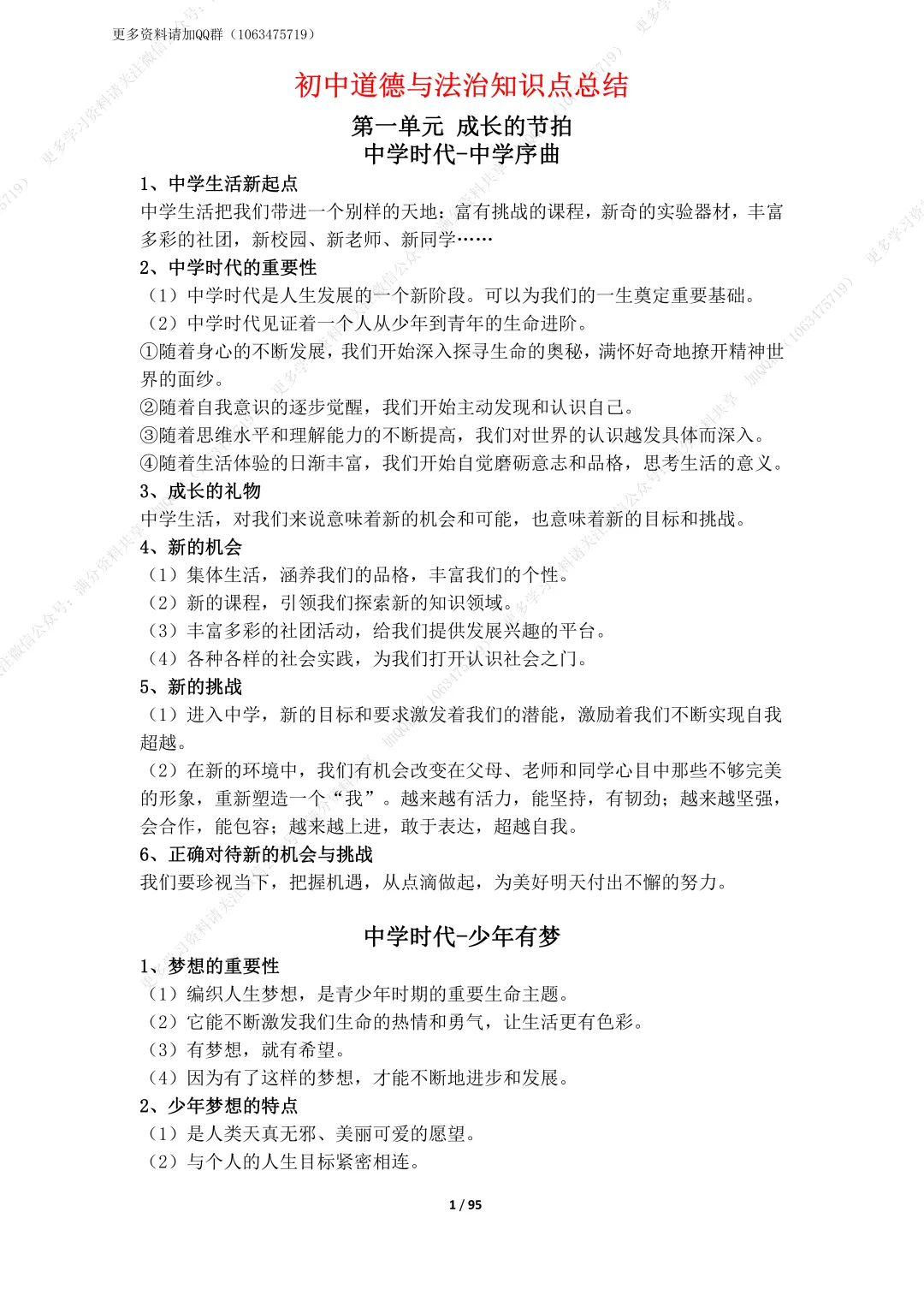 53.人教版政治七年级上册道法各单元知识点总结,电子档可打印