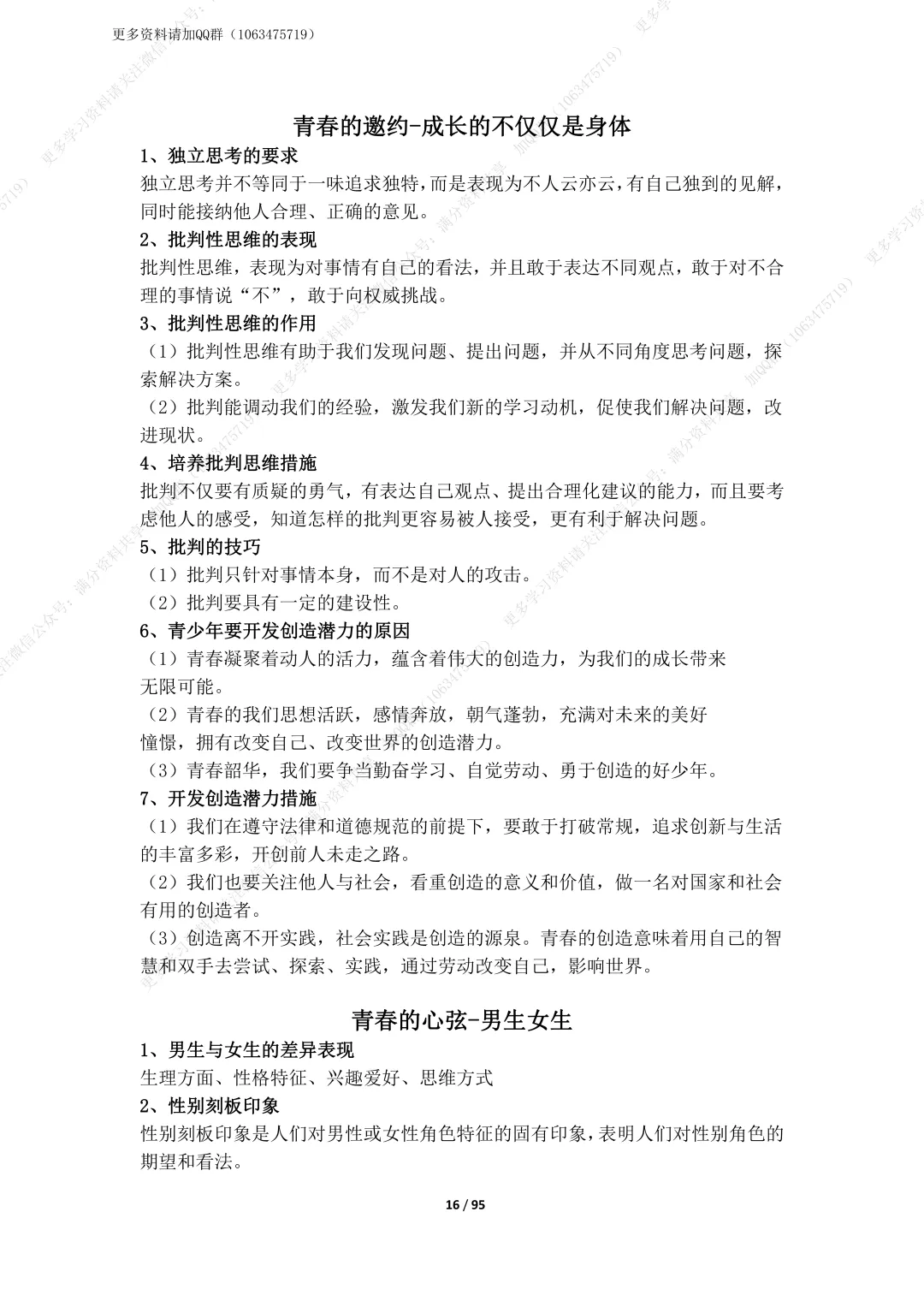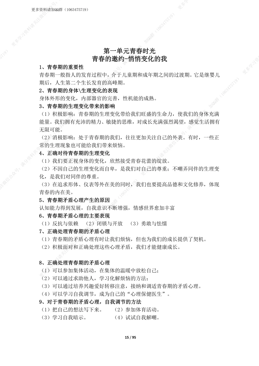 19.部编版道德与法治七年级下册全册知识点总结,电子版可打印