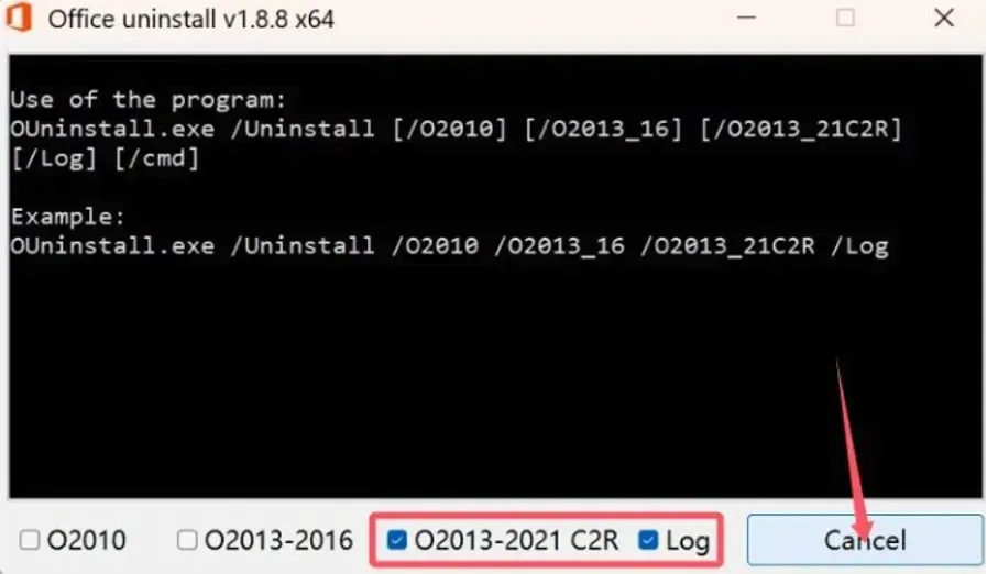 1.1.第一个位32位,第二个位64位系统的,根据自己的系统选择,双击打开后根据你之前电脑安装的office版本进行勾选,同时把log勾选上,然后点击卸载。