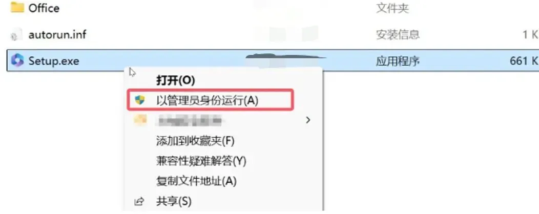 1.3,返回之前解压的文件夹,打开安装包文件夹,找到Setup.exe,鼠标右键,选择以管理员身份运行。