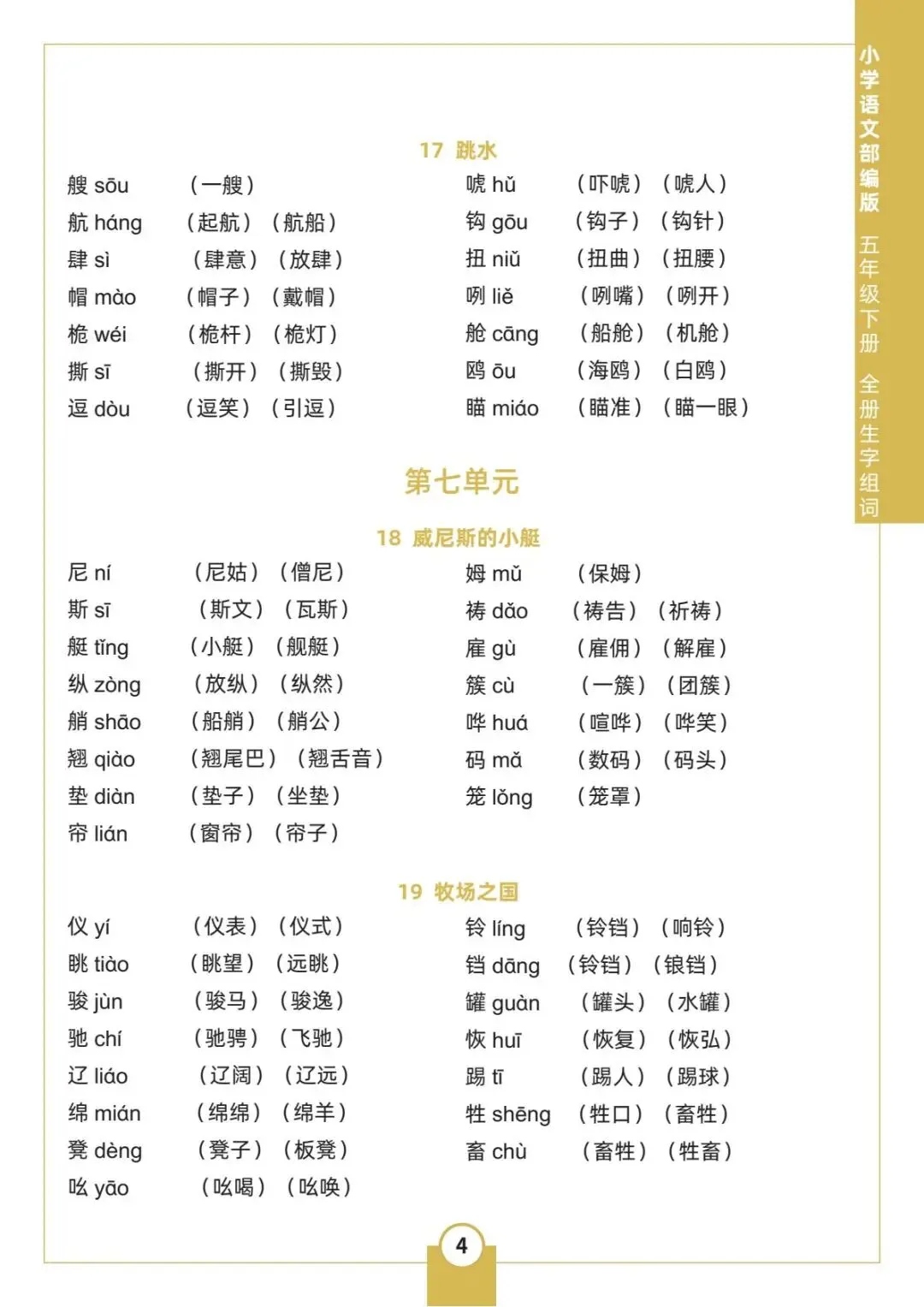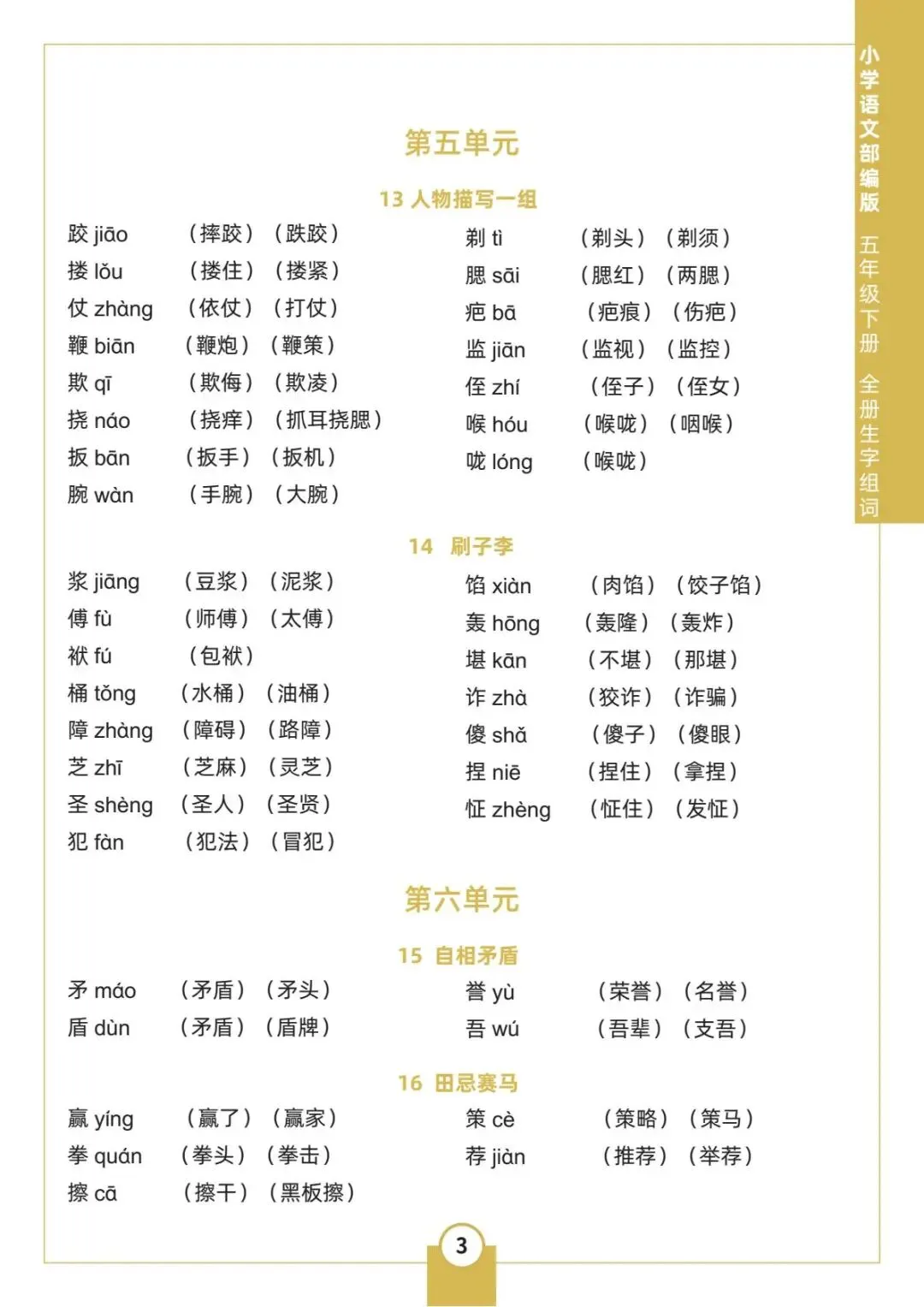 人教统编版语文五年级下册《全册生字组词》电子版可下载打印