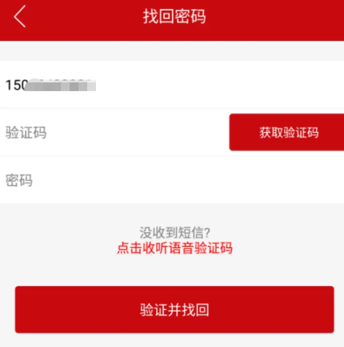 于是转战找回密码功能,也是手机验证码,填上自己自定义的密码,然后