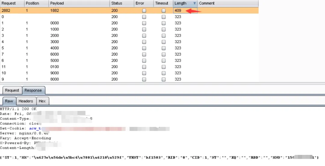 拿到手机号了,下面就开始暴力破解验证码了,用自己手机试了下,验证码是 4 位的,而且请求也是明文的,接下来暴力破解验证码。