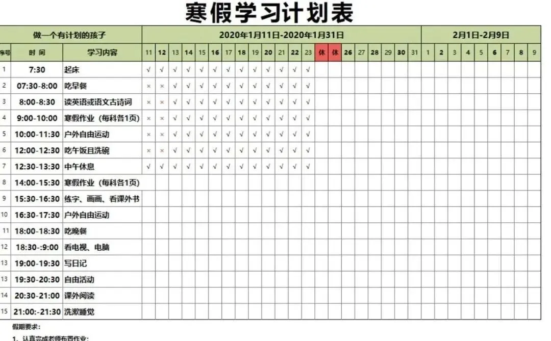 寒假学习计划表.xlsx