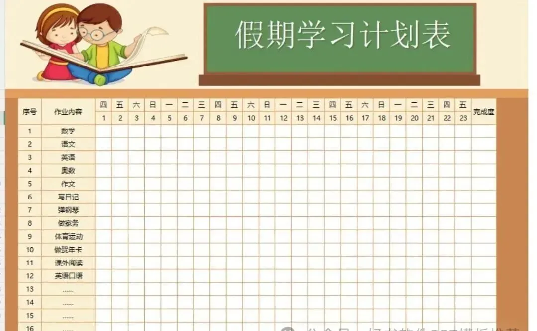 卡通可爱假期学习计划表.xlsx