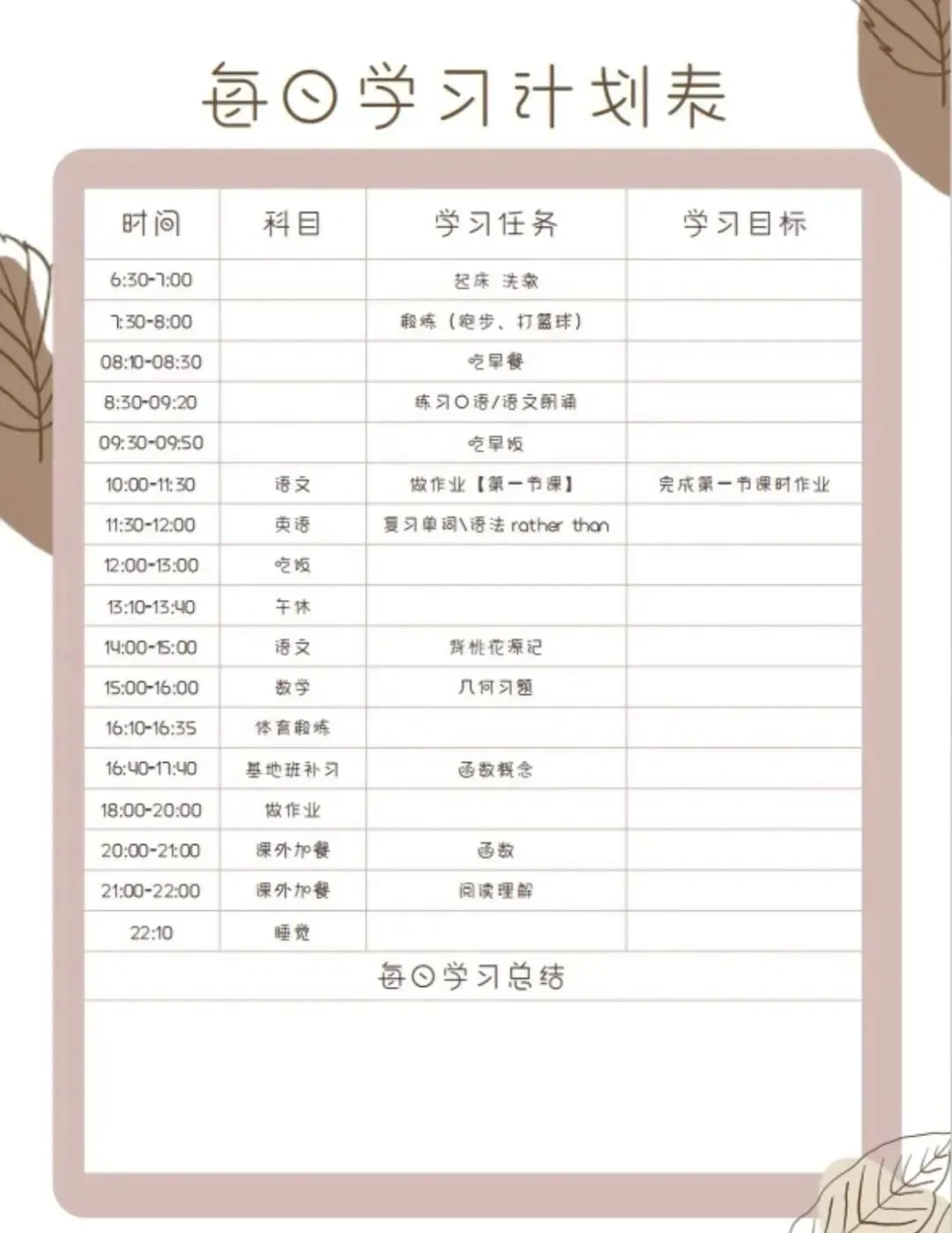 「学习计划表模板」下载↓